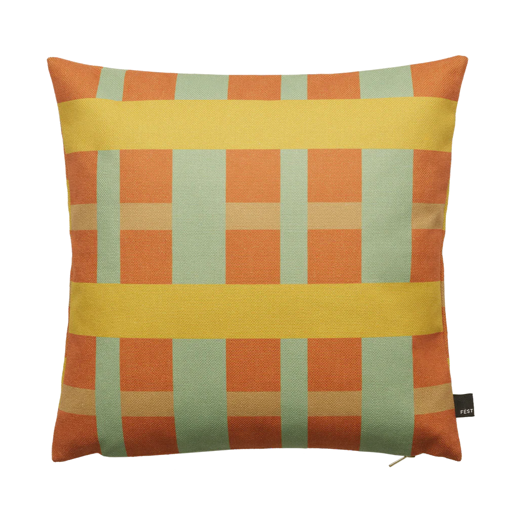Kissen STRIPES AND CHECKS orange mit grünem Muster