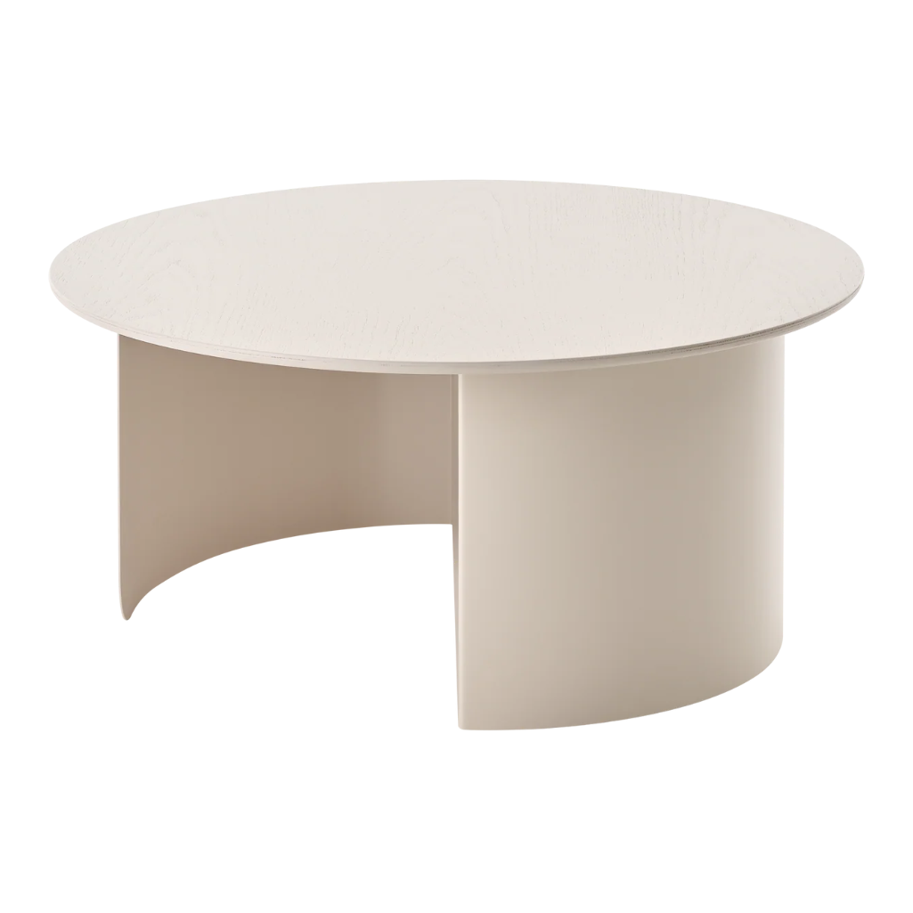 Ovaler Tisch PLATEAU mit Eichenplatte und sandfarbener Basis