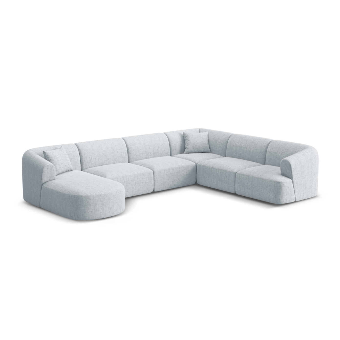 Linksseitige panoramische 7-sitzige Eckcouch CAMPI hellgraues Chenille
