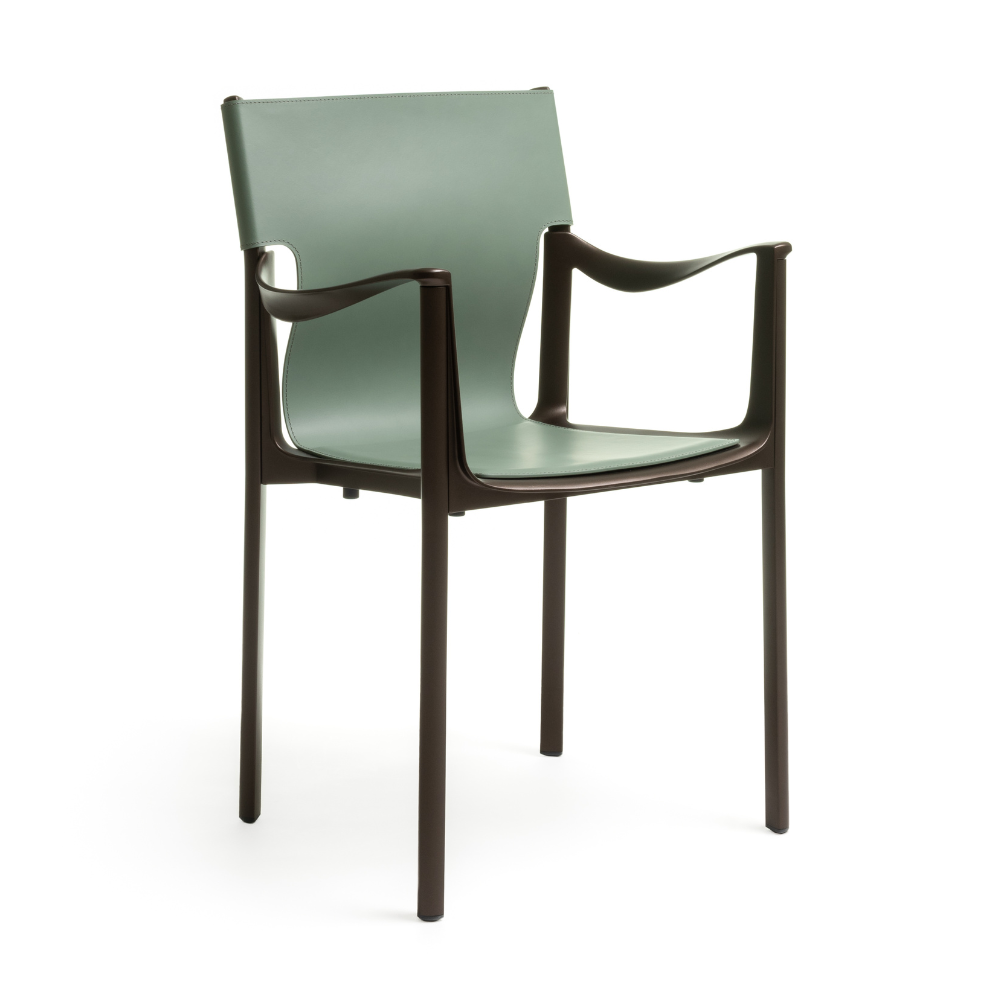 VENICE Stuhl, grünes Leder, dunkelbraunes Gestell