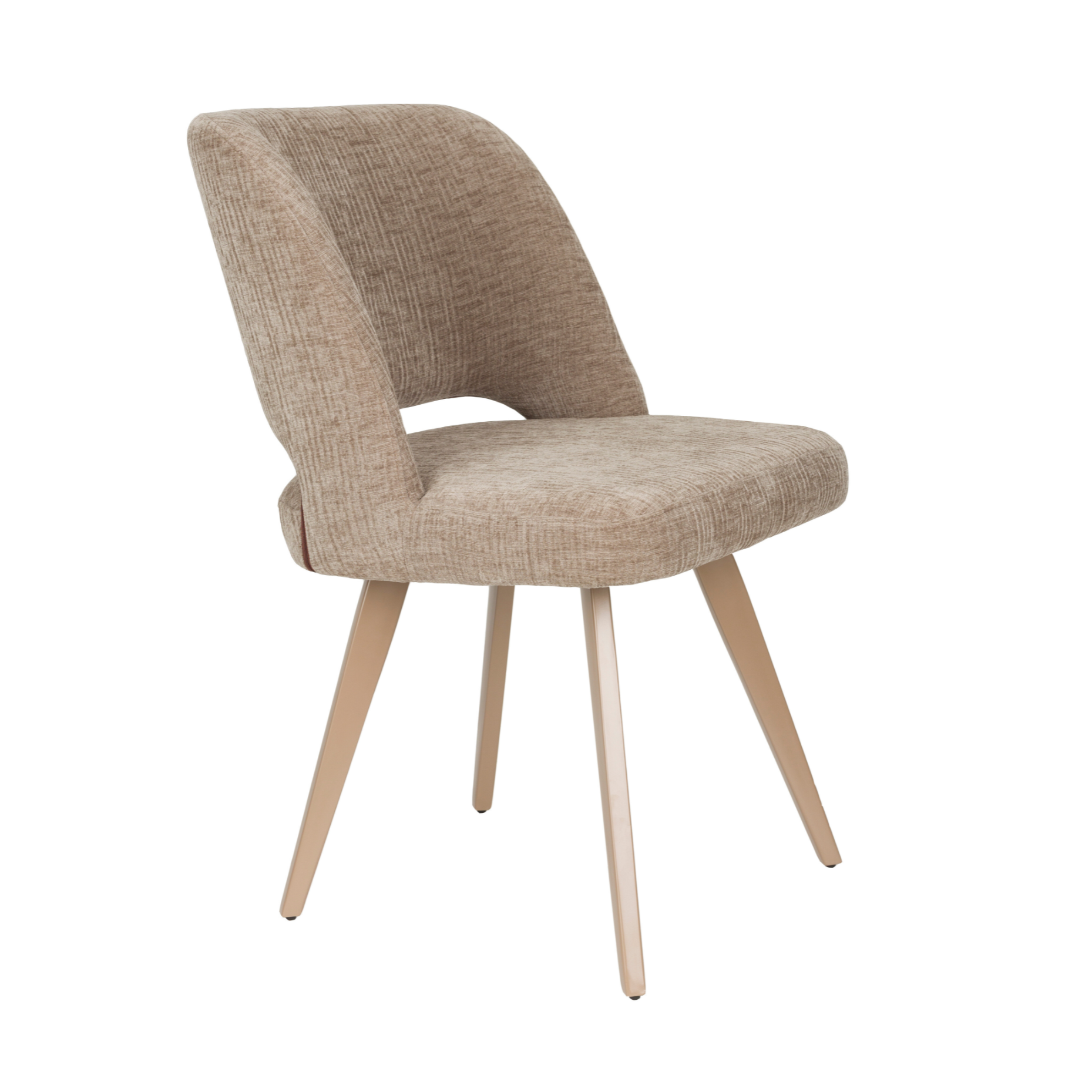 Ein Stuhl mit Foyer Melange Brown Armlehnen mit einer Metallbasis