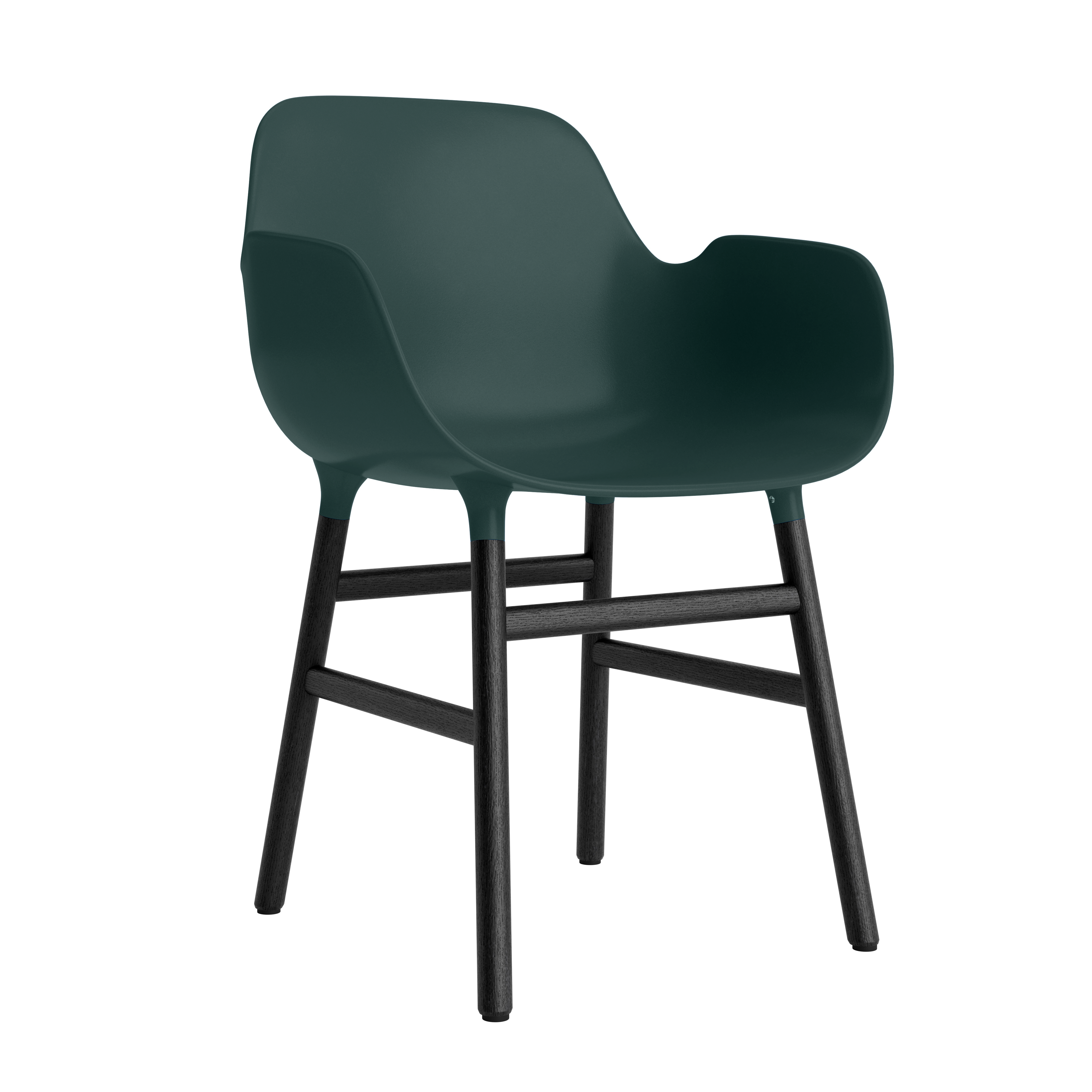 Stuhl mit Armlehnen von grünen Formen mit einer schwarzen Eichenbasis