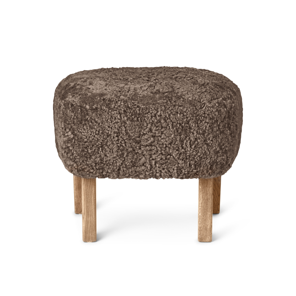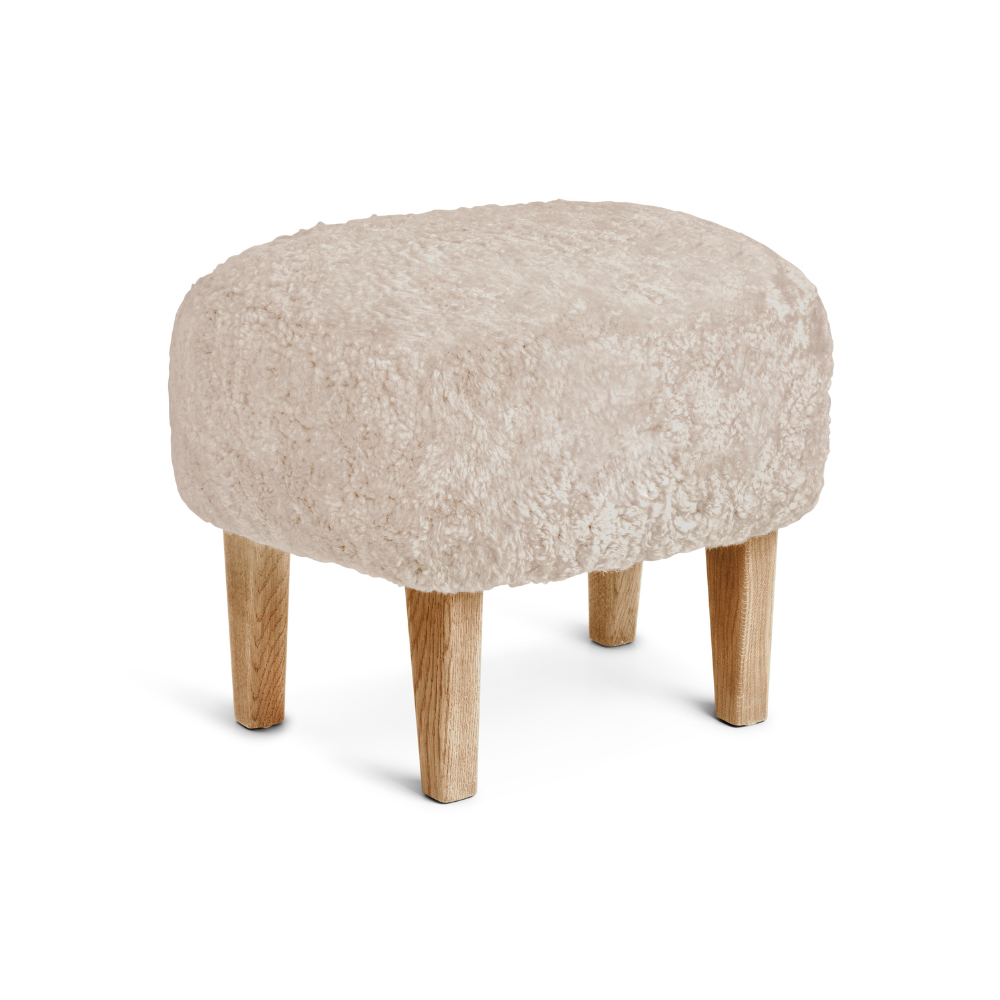 Fußhocker INGEBORG Schafsleder mit dunklem Eichenfuß