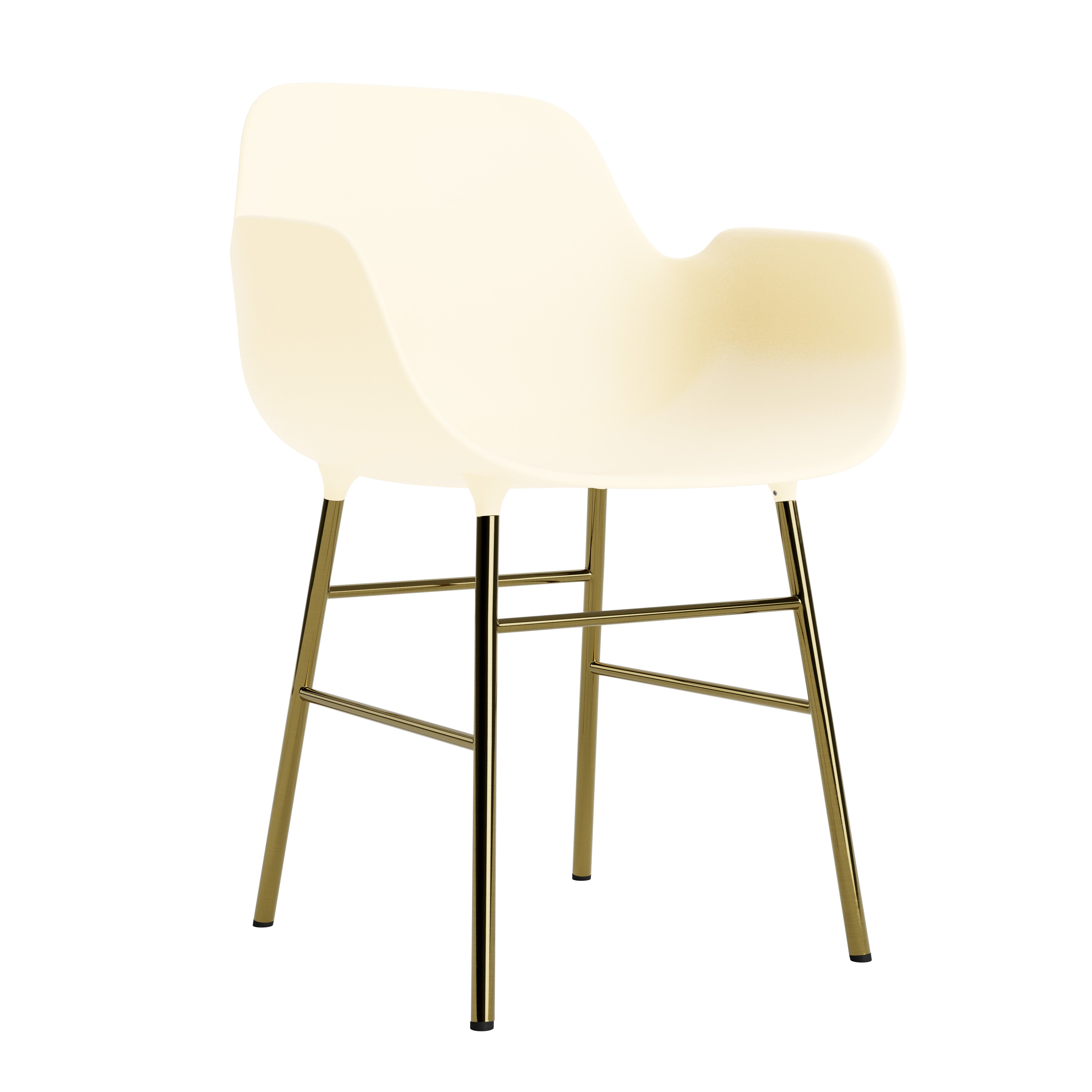 Chair with armrests of light gray forms with a golden base