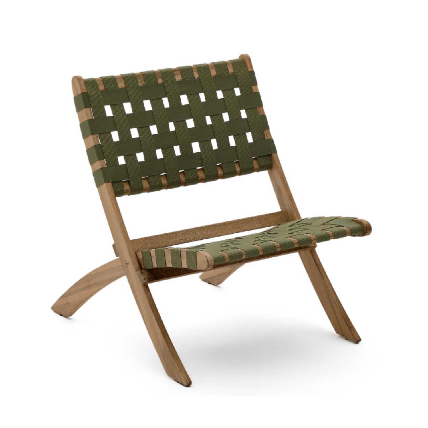 A green-beige Vilara deckchair with an acacia base