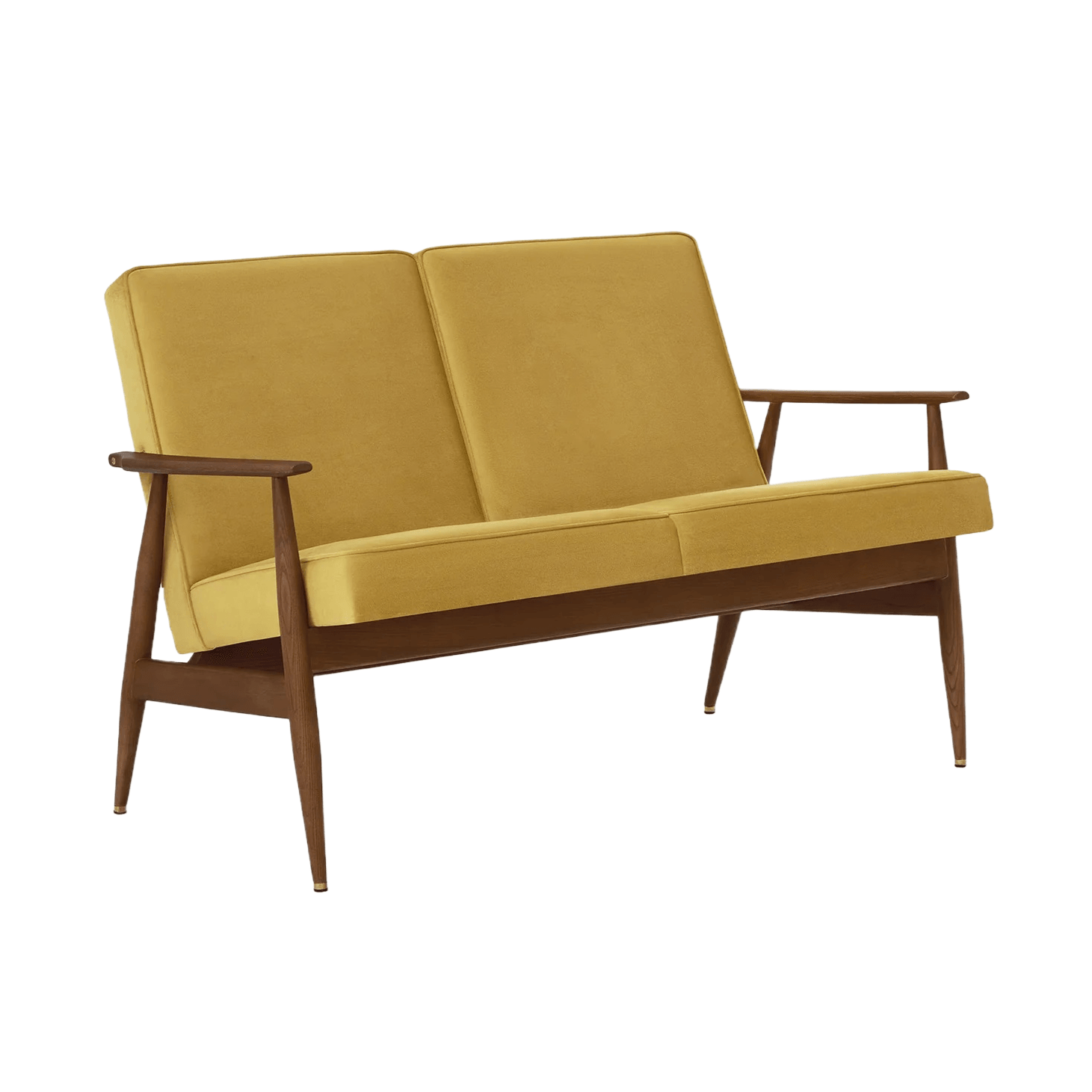 2-person Sofa divided Fox Yellow in the Shine Velvet Mustard fabric