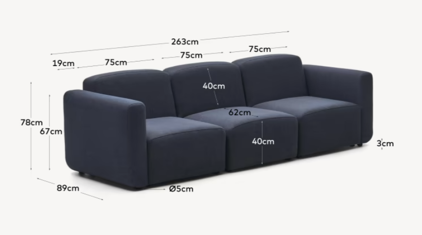 Blue color of the 3-seater sofa Neom is a subtlety that adds warmth and harmony to the interior. With the ability to combine modules effortlessly, the Neom collection emphasizes versatility, allowing you to adapt the sofa to changing needs and preferences.