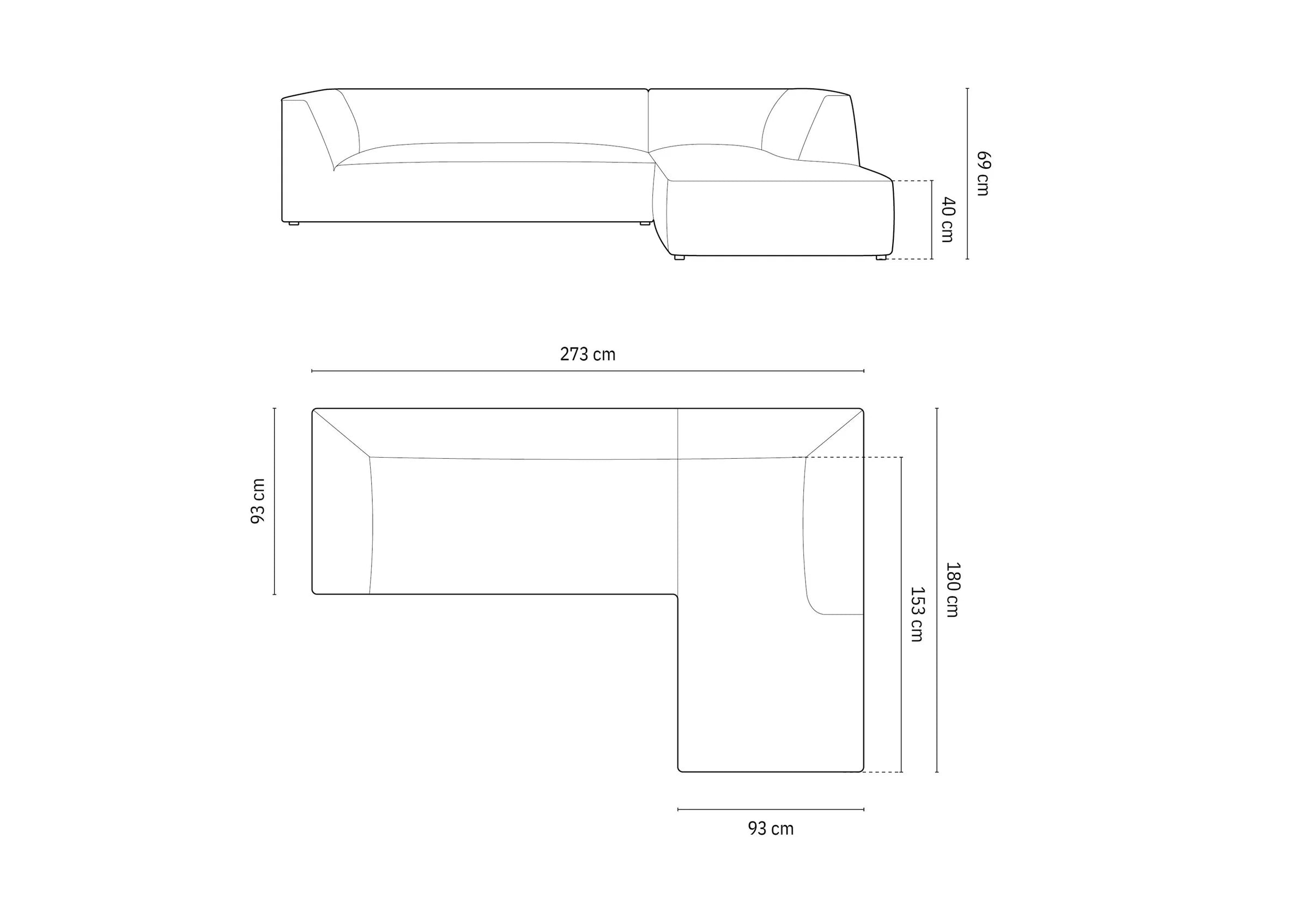 Narożnik sztruksowy 4-osobowy prawostronny RUBY beżowy Micadoni    Eye on Design
