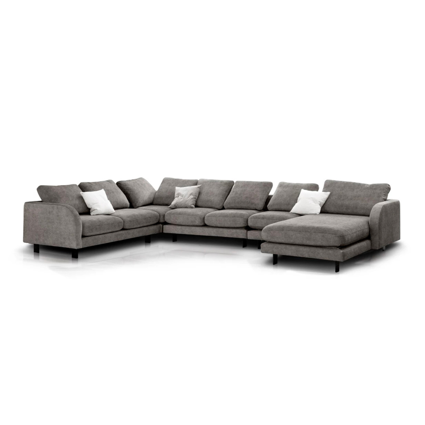The Dumbo collection merges modernity with classic elements, offering elegant, soft fabrics such as cotton, wool, linen, or viscose, which ensure comfort and aesthetics. Natural materials like granite, Patagonia marble, or wood give the furniture a luxurious character. Left-facing U-shaped sofa Dumbo is an excellent choice for spacious interiors that require functionality, comfort, and a modern accent.