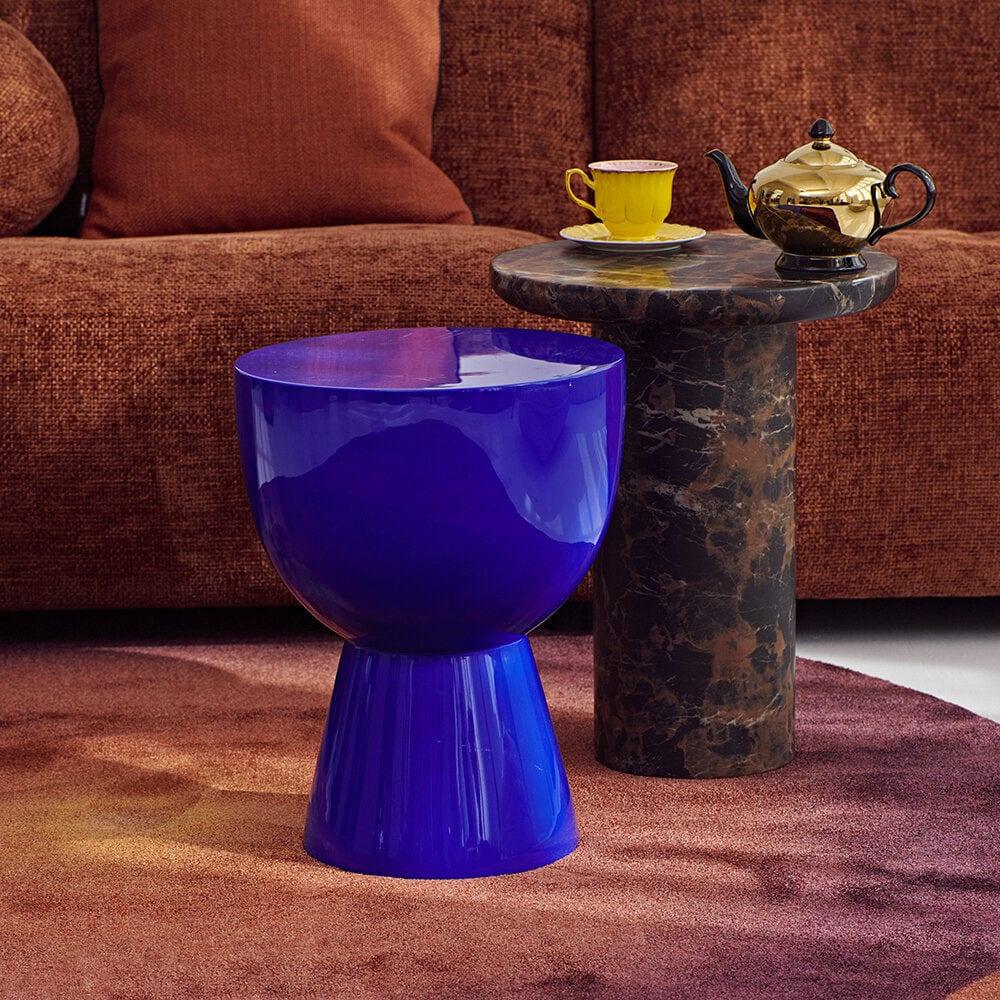 A dark blue stool there