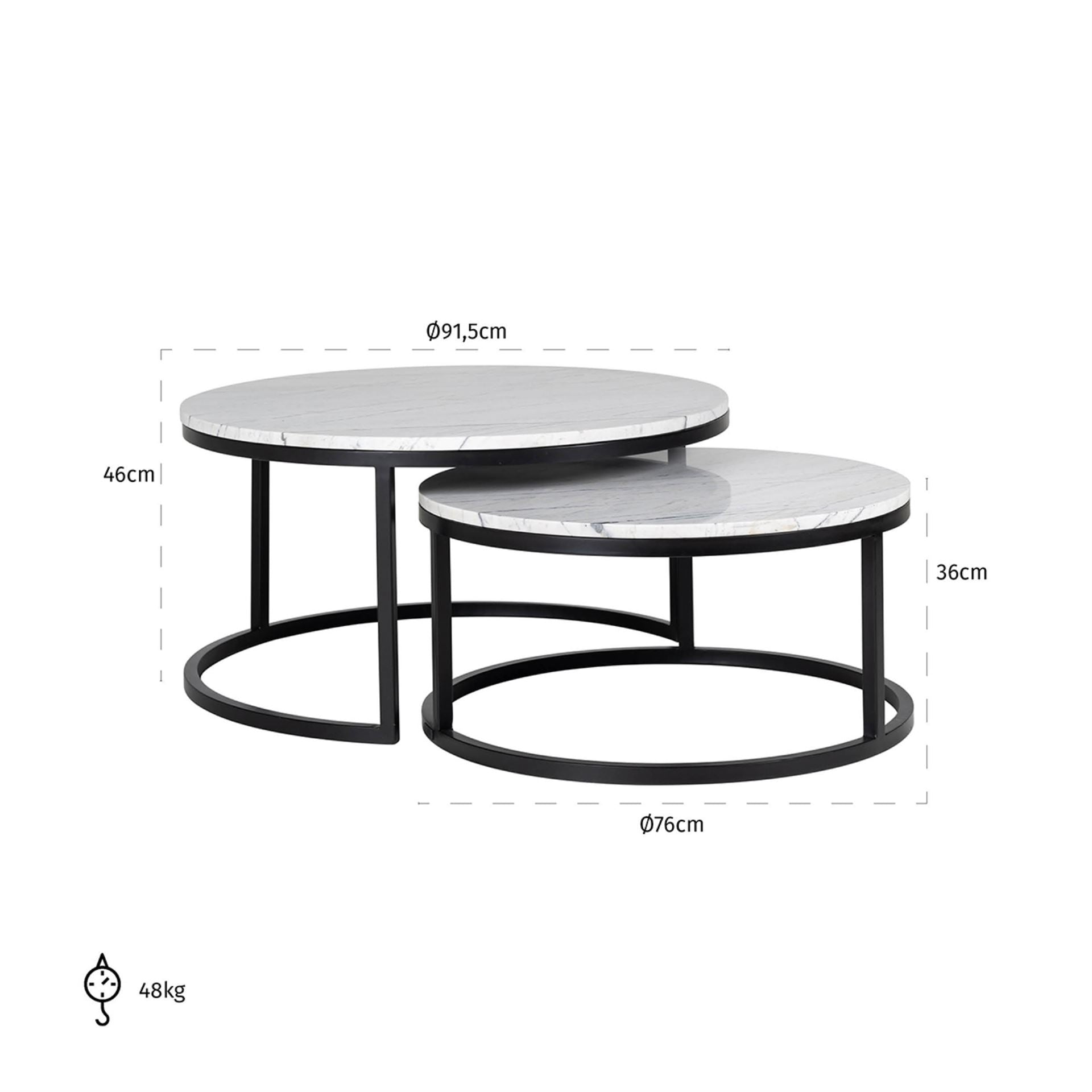 The base of the tables is not only a functional support, but also a decorative element. The black base colors give the tables a certain dose of classics and universality. This color perfectly harmonizes with white marble of countertop, creating a contrast that attracts attention and gives the interior character.