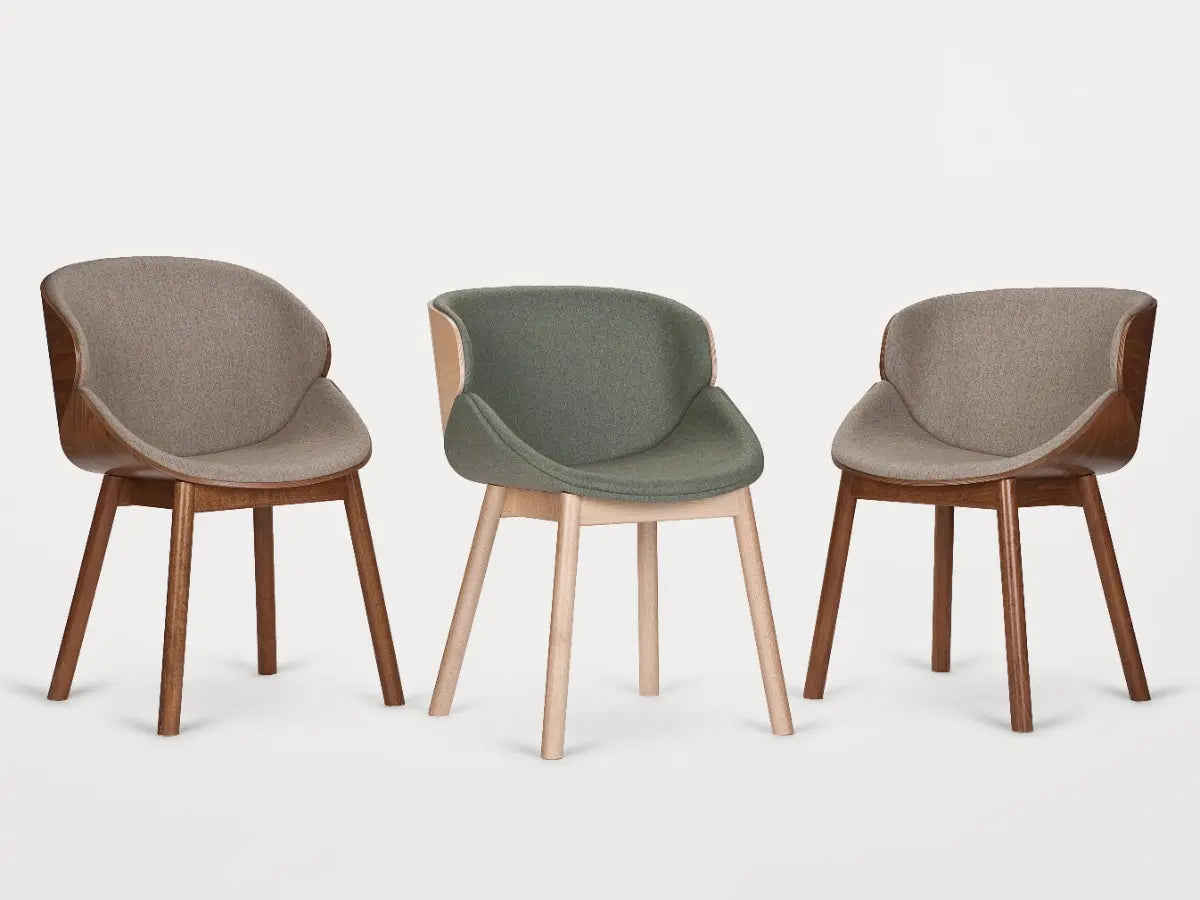 The model is available in beech or oak wood and comes in several finish variants – from plywood to full upholstery. Aria is perfect for club spaces, cafes, and elegant commercial interiors, where functionality meets designer form. This chair is for those who seek something more than standard solutions.