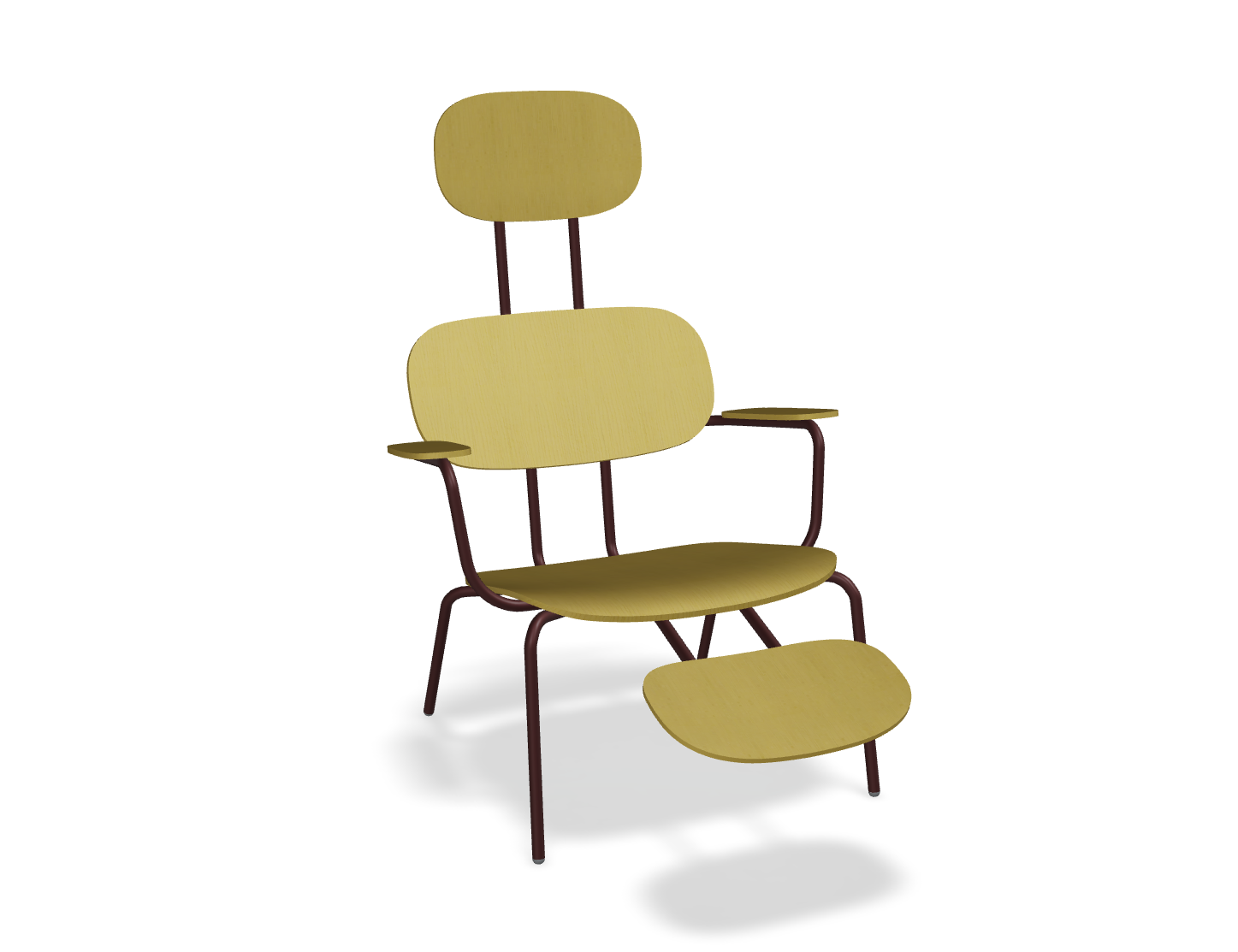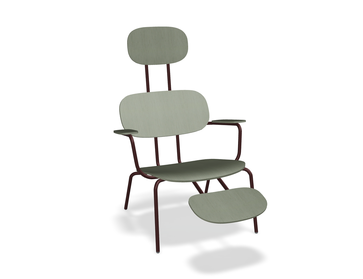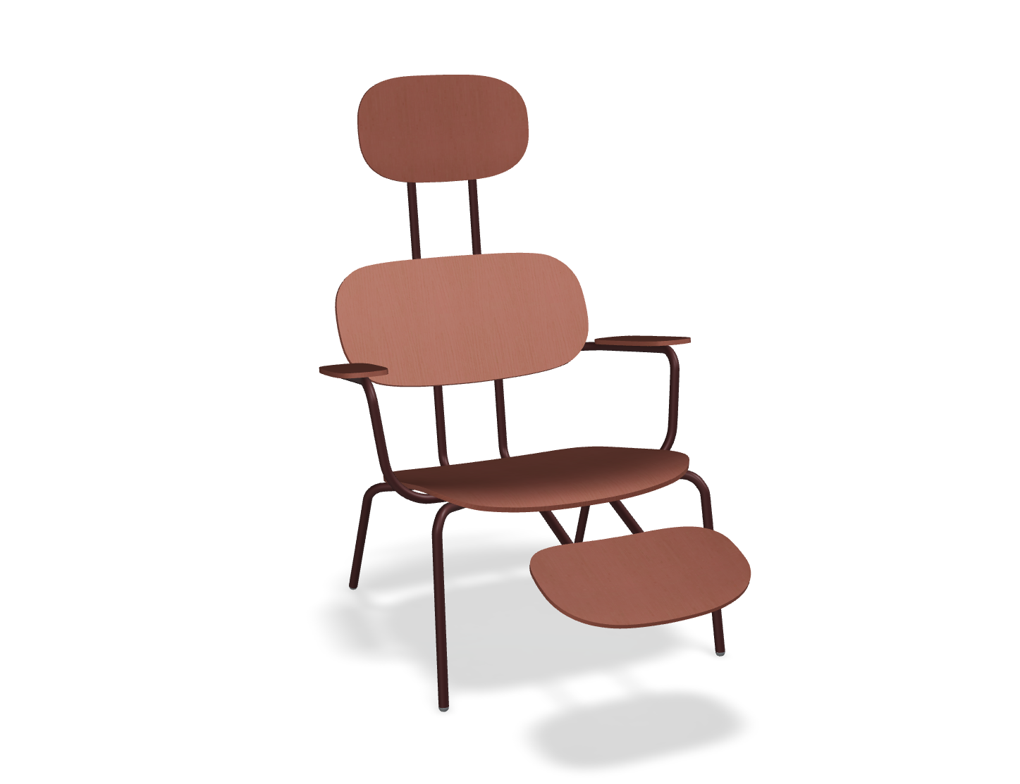 Chair with headboard From the New School collection is a new level of comfort, designed by Studio Form US with Love. The extended version of the chair in this series, equipped with comfortable armrests, an integrated footrest and a headrest, provides an optimal seat angle and a deep relaxing position. Armchair Ideally suited to the lounge zones, hotel lobby or living rooms, and a wide range of upholstery fabrics and the option of a larger, separate footrest additionally increase comfort.