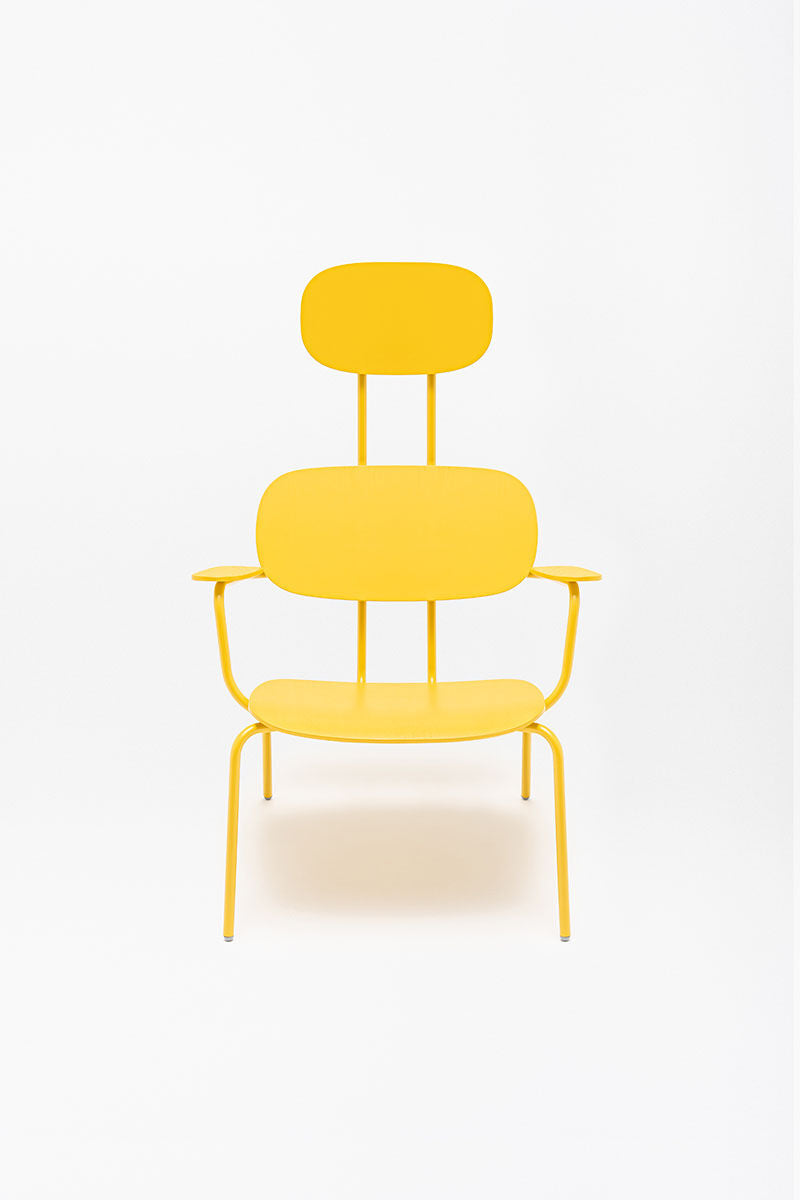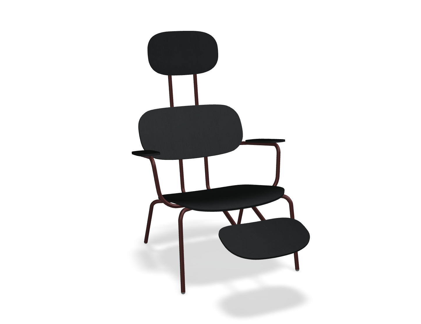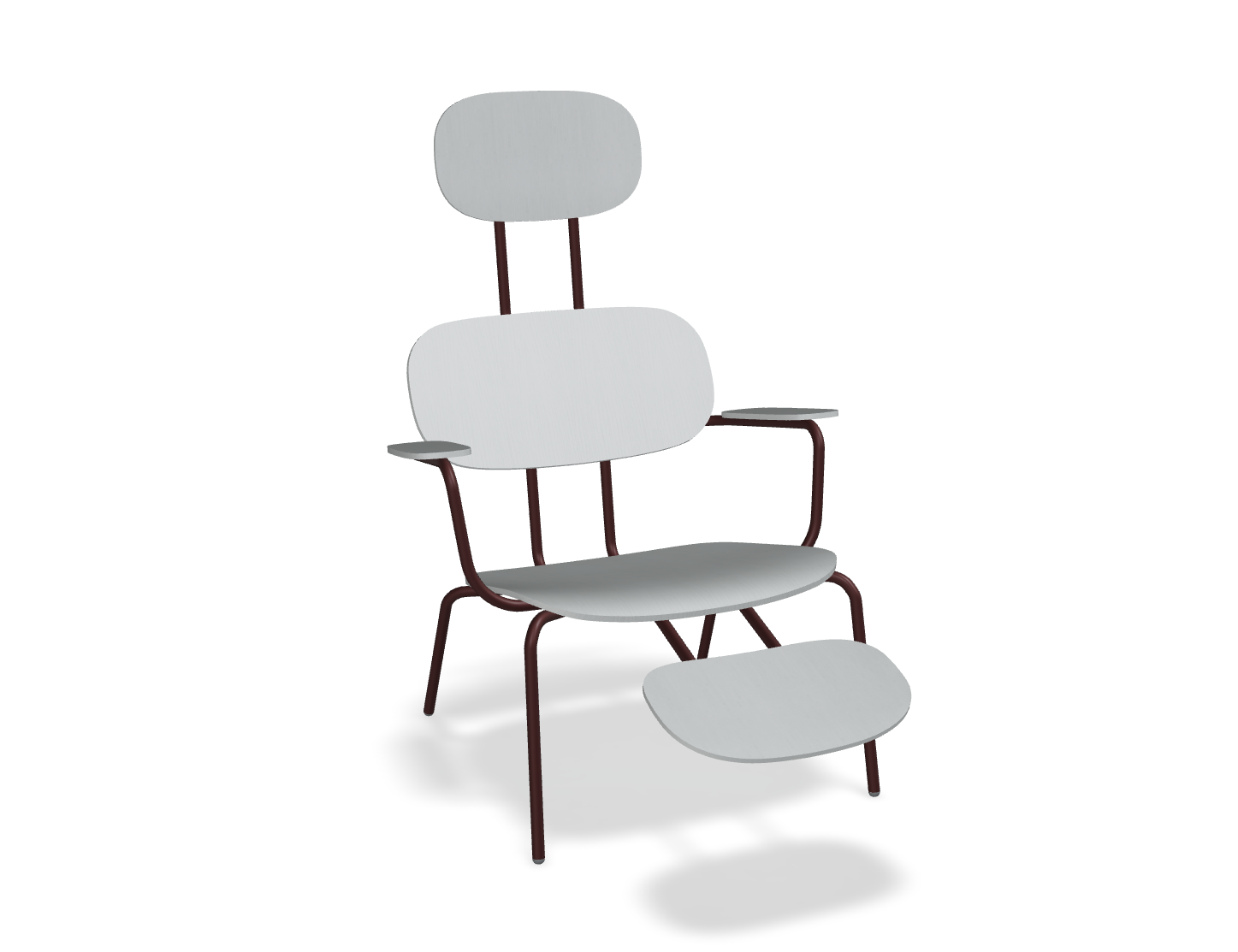Chair with headboard From the New School collection is a new level of comfort, designed by Studio Form US with Love. The extended version of the chair in this series, equipped with comfortable armrests, an integrated footrest and a headrest, provides an optimal seat angle and a deep relaxing position. Armchair Ideally suited to the lounge zones, hotel lobby or living rooms, and a wide range of upholstery fabrics and the option of a larger, separate footrest additionally increase comfort.