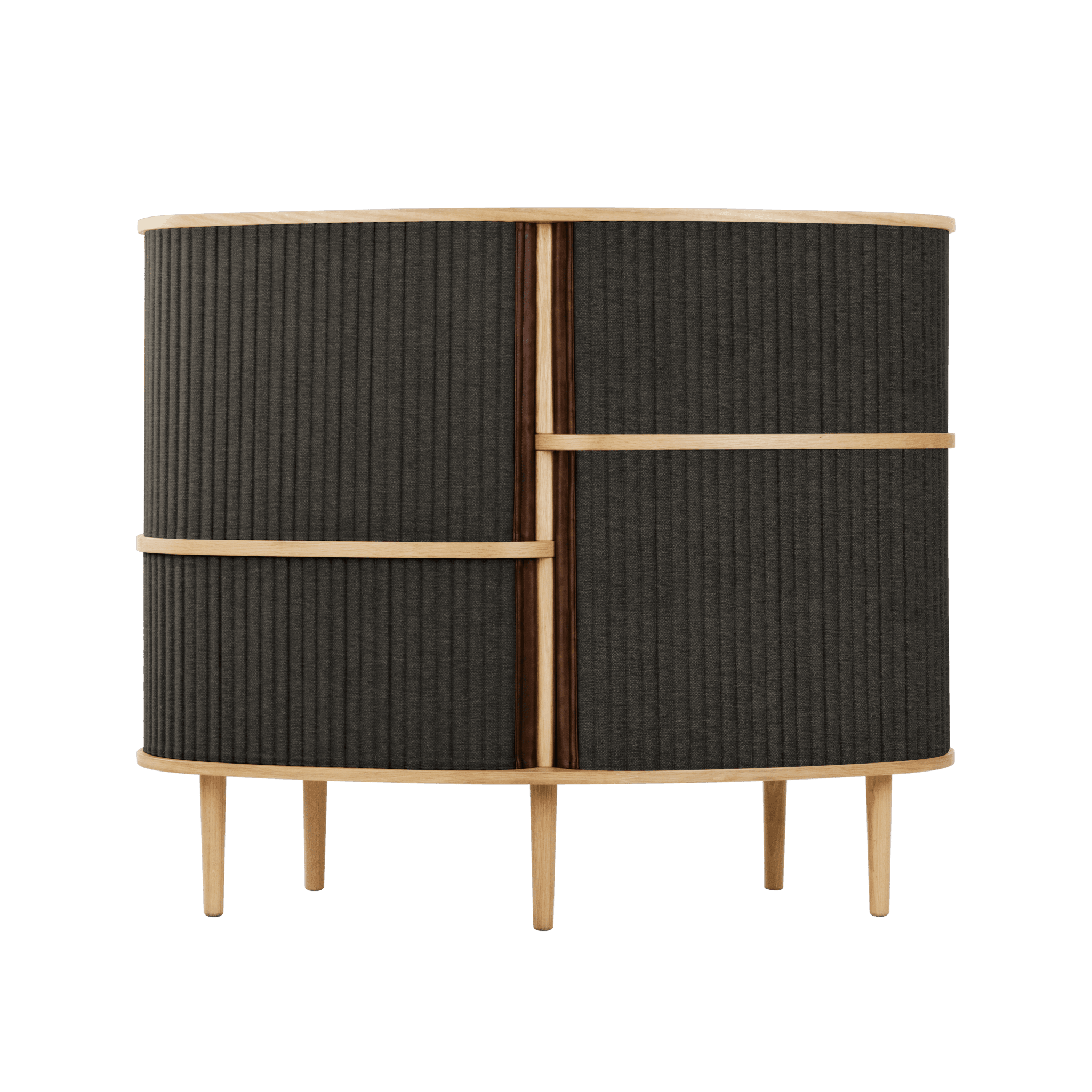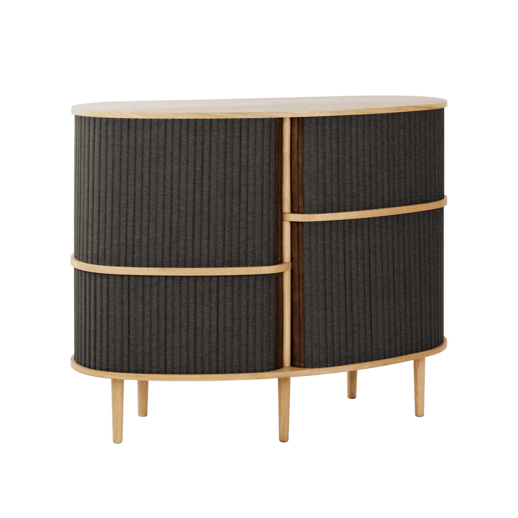 Cupboard Audience to Extremely practical cabinet, perfect for placing in the living room or in any other room where you need a storage space. It is characterized by Nordic, but bold style, and sliding fabric blinds give it a nostalgic and at the same time modern character.