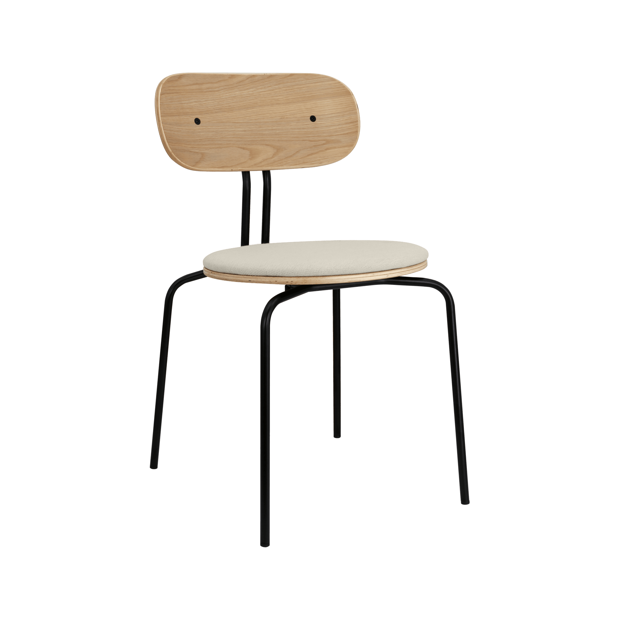Chair Curious is elegant, light and minimalist furniture, made of oak veneer. It is available with brass or black legs, and the optional seat cushion provides additional comfort. You can choose a pillow from 17 colors of Horizons fabric, made 100% recycled, as well as in a brown or white shade of Teddy Bear fabric.