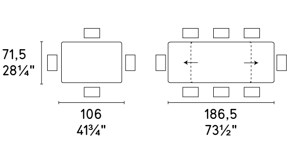 The table top and 2 side extensions automatically fit and are made of tempered glass. Made from elliptical tubular metal, the base construction matches the table top. Multifunctional and easy to transform, this table Dakota will instantly adapt to any environment and fits contemporary lifestyles.