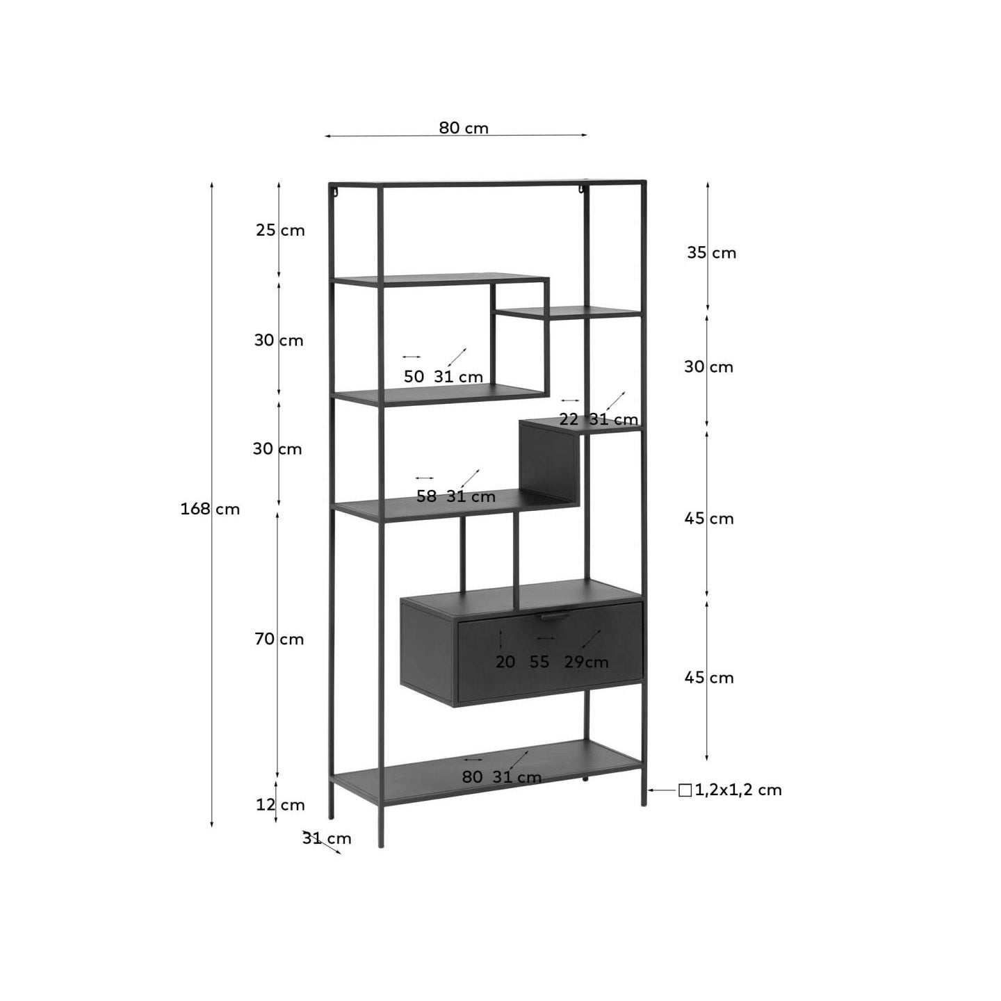 Black bookcase Shantay, made of the highest quality steel, is dedicated to people who know what they want. This unique design work is an excellent proposition for industrial and non -conformist enthusiasts. The unique details of this product are the use of a square cross -section pipes, which gives it a unique character.