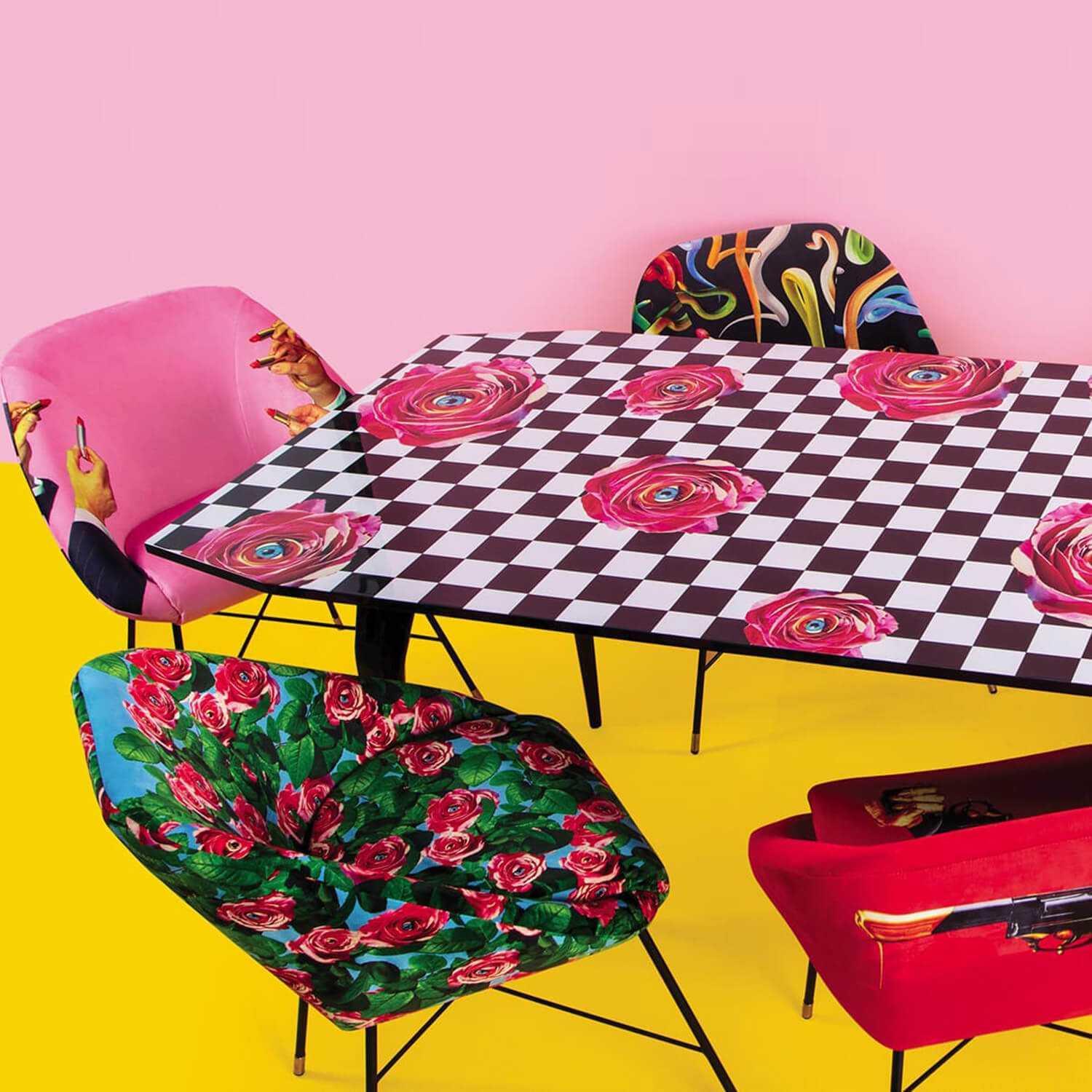 Designer chair in the style of the 1950s from the Italian king of the avant -garde - Seletti, which Like a gate to another, surreal dimension, it will give the interior a unique character. Upholstery with expressive, dynamism -full colors and a slightly controversial collage create an original work of art.
