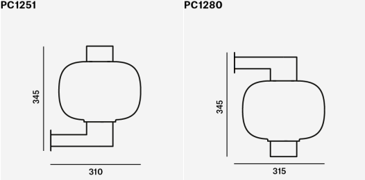 Wall lamp Bonbori Wall is available in two variants: Bonbori Wall Up, paying homage to tradition, and Bonbori Wall Down, which is its mirror image. Both models are suitable for indoor and outdoor use, inspired by traditional Japanese paper lanterns used during rice harvest festivals. The word "bonbori" describes the soft light that emanates from a snow-covered cave.
