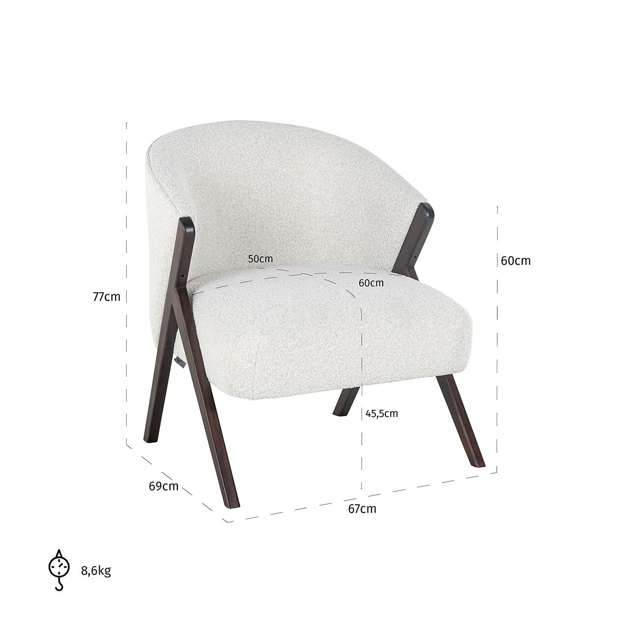 Armchair Mia emanates with a unique, luxurious look that catches the eye and adds prestige to any interior. Its elegance lies in a unique fabric, which is upholstered - Bouclé white fabric. This fabric gives the armchair not only a beautiful look, but also a delicate and warm character. Bouclé, known for its softness and breathability, not only looks special, but also has also been a very fashionable choice in interior design arrangements, which makes it even more desirable element.