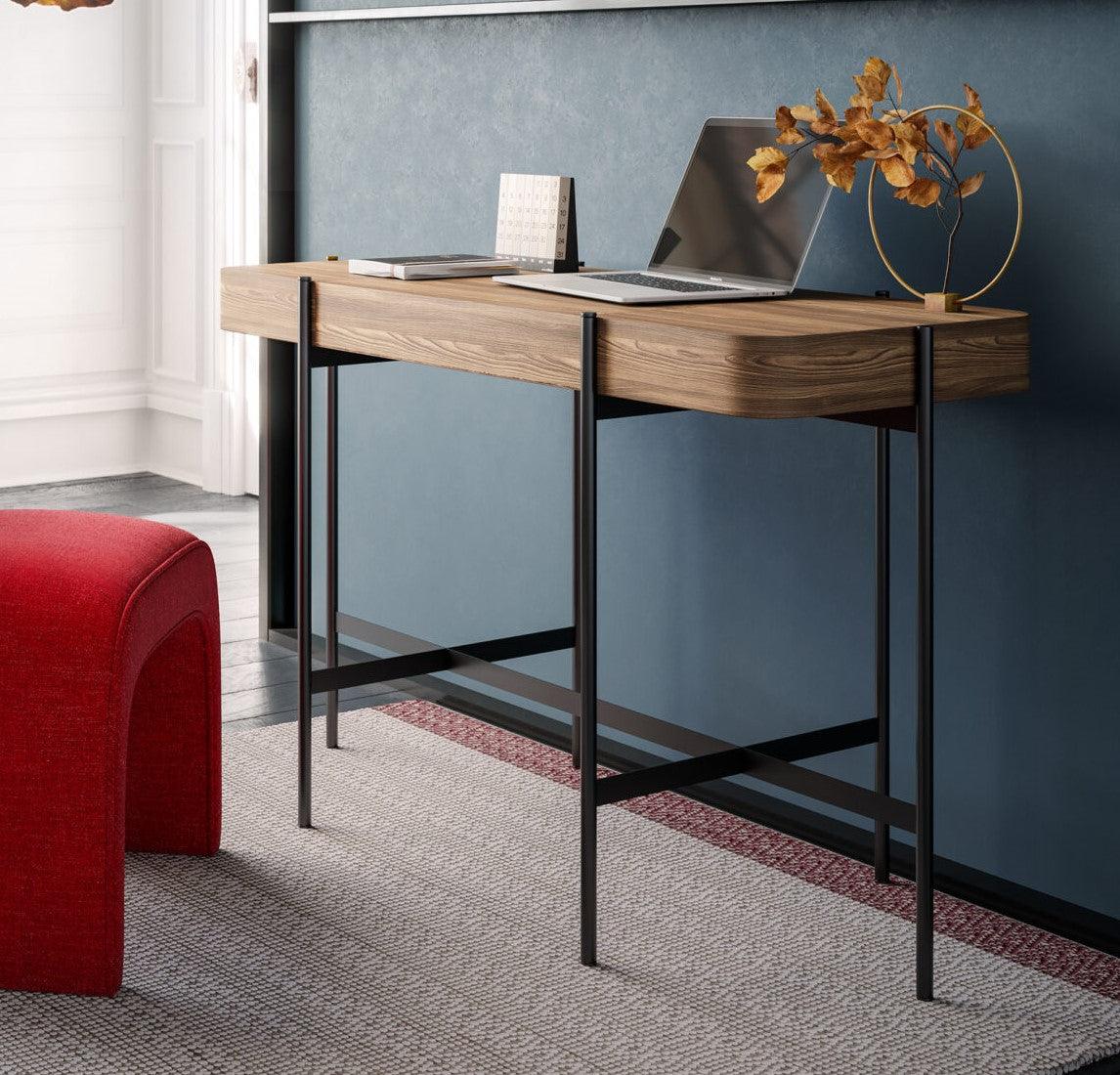 The characteristics of the Caillou Desk are clean and simple lines that add to its minimalist charm. It features a drop-down compartment that is perfect for hiding and storing small and valuable items, ensuring order and organization. This thoughtful solution makes the desk not only functional but also practical.