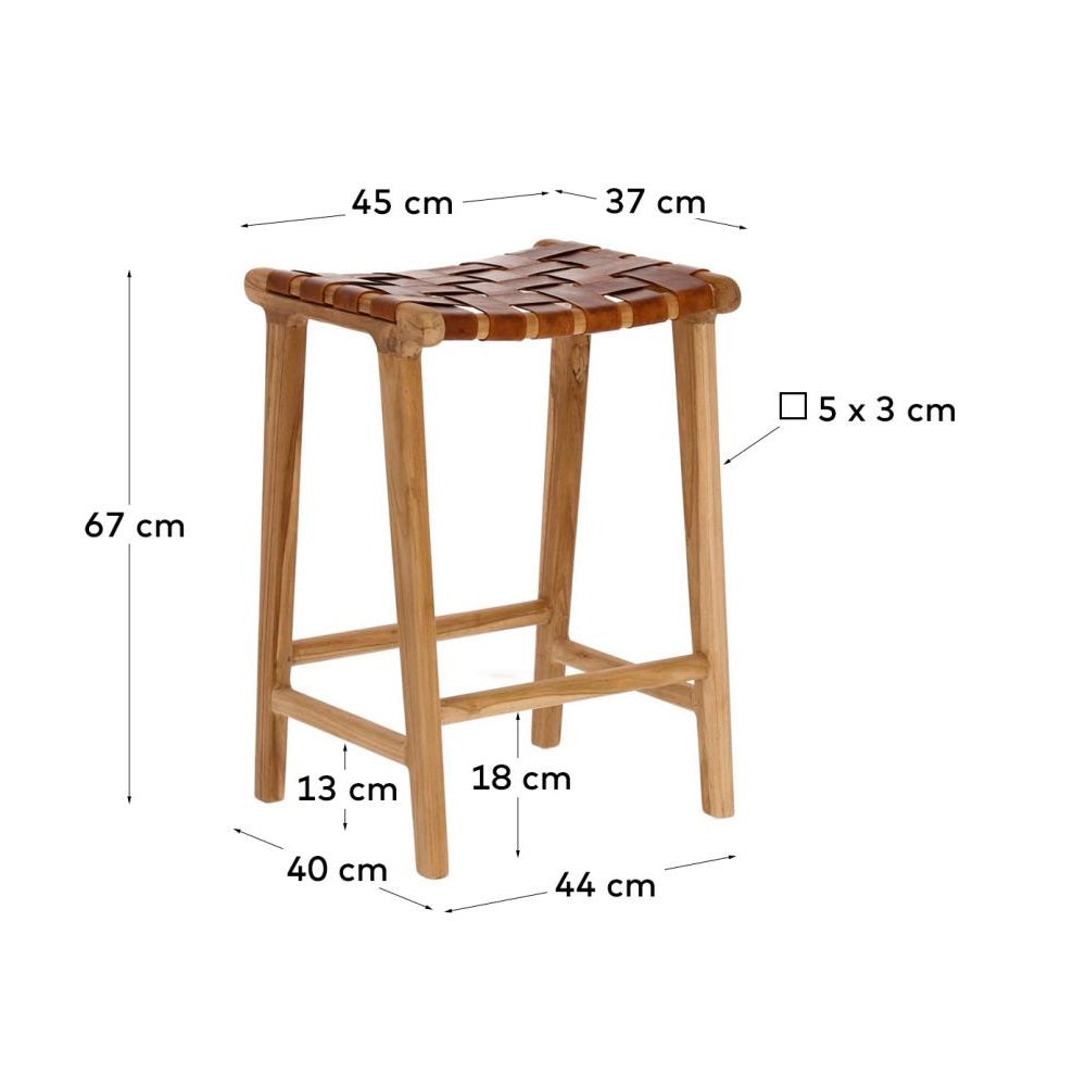 The Calixta bar stool is an exceptional piece of furniture that combines excellent craftsmanship with a unique style. It is made from solid teak wood, which not only provides durability but also highlights its natural beauty. Hand-woven leather straps add elegance and sophistication, creating a unique pattern that catches the eye.