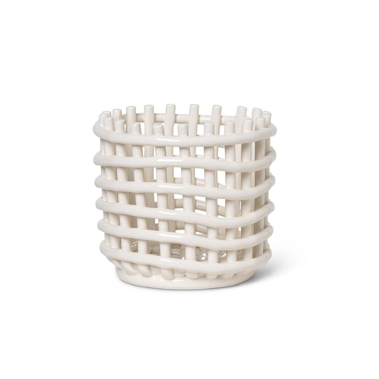 Basket Ceramic Basket brings traditional weaving techniques into the world of ceramics. Handcrafted, this basket recreates the familiar look of woven containers, combining aesthetics with functionality. It can be used as a planter, a fruit bowl, or a decorative accent in the room. Each basket is hand-carved and subtly uneven, making every piece unique.