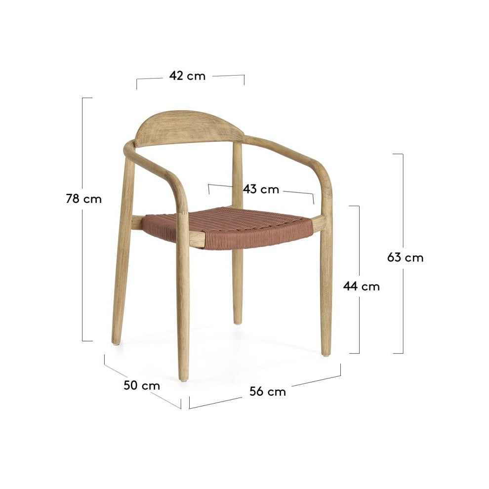 The seat made of hand-woven rope not only gives the chair a distinctive look but also makes it resistant to UV radiation, making the designer chair Nina an excellent choice for both indoor and outdoor use under cover. This is a chair that brings natural charm and elegance straight into your interior while caring for the environment and a sustainable lifestyle.