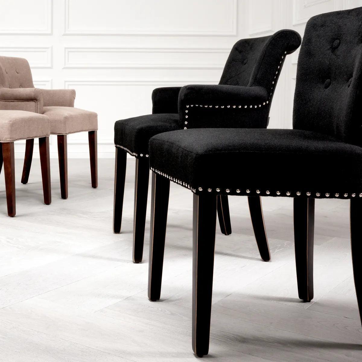 Dining Chair Key Largo is nothing less than the embodiment of elegance and comfort in one. Its delicate beige linen upholstery evokes associations with the pristine white beaches of tropical islands, while the antique bronze studs add character and remind us of the rich history of furniture styles. But what truly sets the Key Largo chair apart from the rest are the details.
