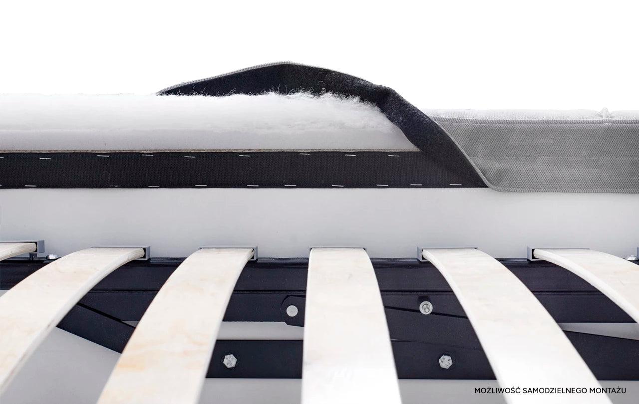 Chloe is also distinguished by a spacious and high box for bedding, which makes the bedroom space effectively used. The furniture is available in three different dimensions, which allows you to adapt it to individual needs. Customers also have the option of choosing a variety of cable devices available in fashionable designs.