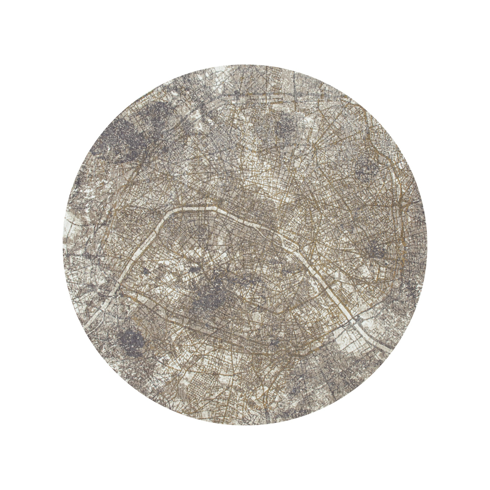 Round gray rug Cities Paris Space Trip Round is a unique decorative element inspired by maps of iconic cities. The pattern reflects bird's-eye views, bringing a dynamic, vibrant atmosphere into the interior. This unique design combines elegance with modernity, creating an extraordinary aesthetic that will catch the eye.