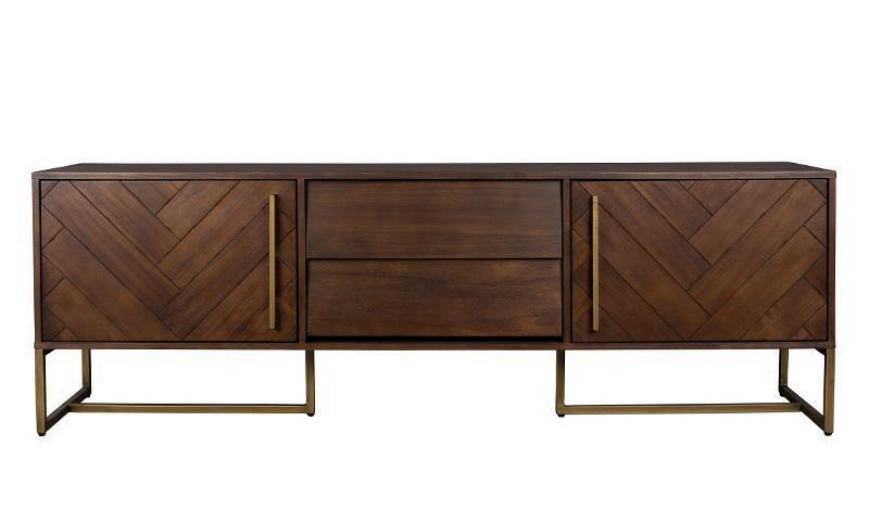 The entire structure is placed on a steel frame, which has been powder-coated in a gold-brass color. The sideboard is adorned with stylish handles in the color of antique brass. Acacia sideboard Class will be an interesting addition to almost any interior.