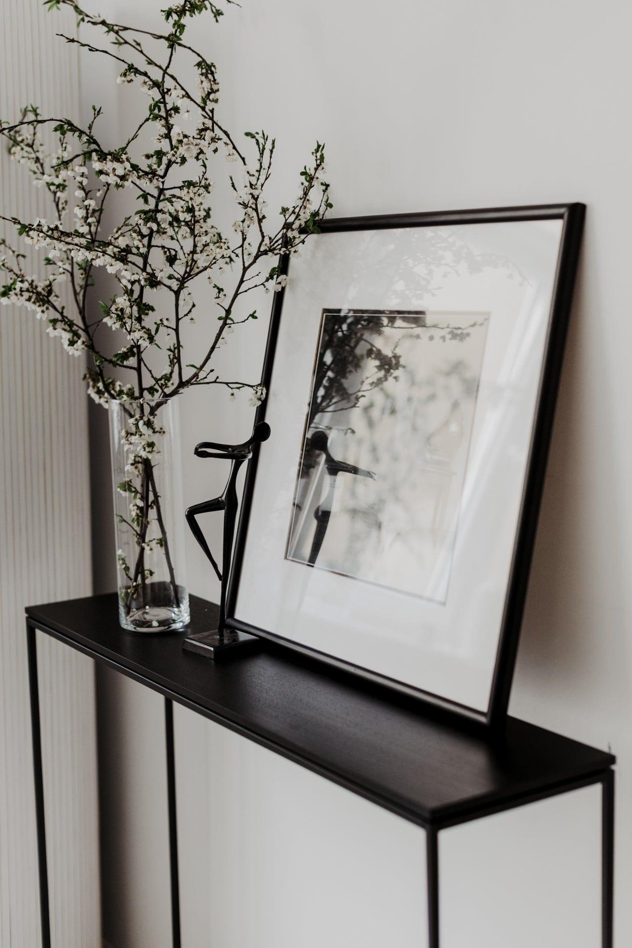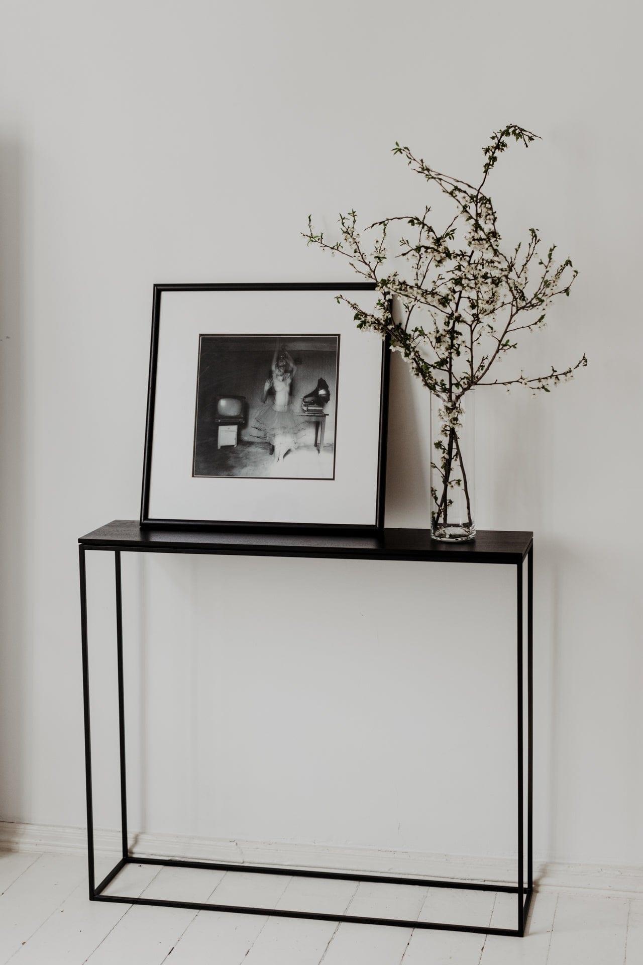 Minimalist console with an elegant veneer top. It will be the perfect solution in any modern, loft, or Scandinavian interior. It combines timeless form, high quality craftsmanship, and functionality.