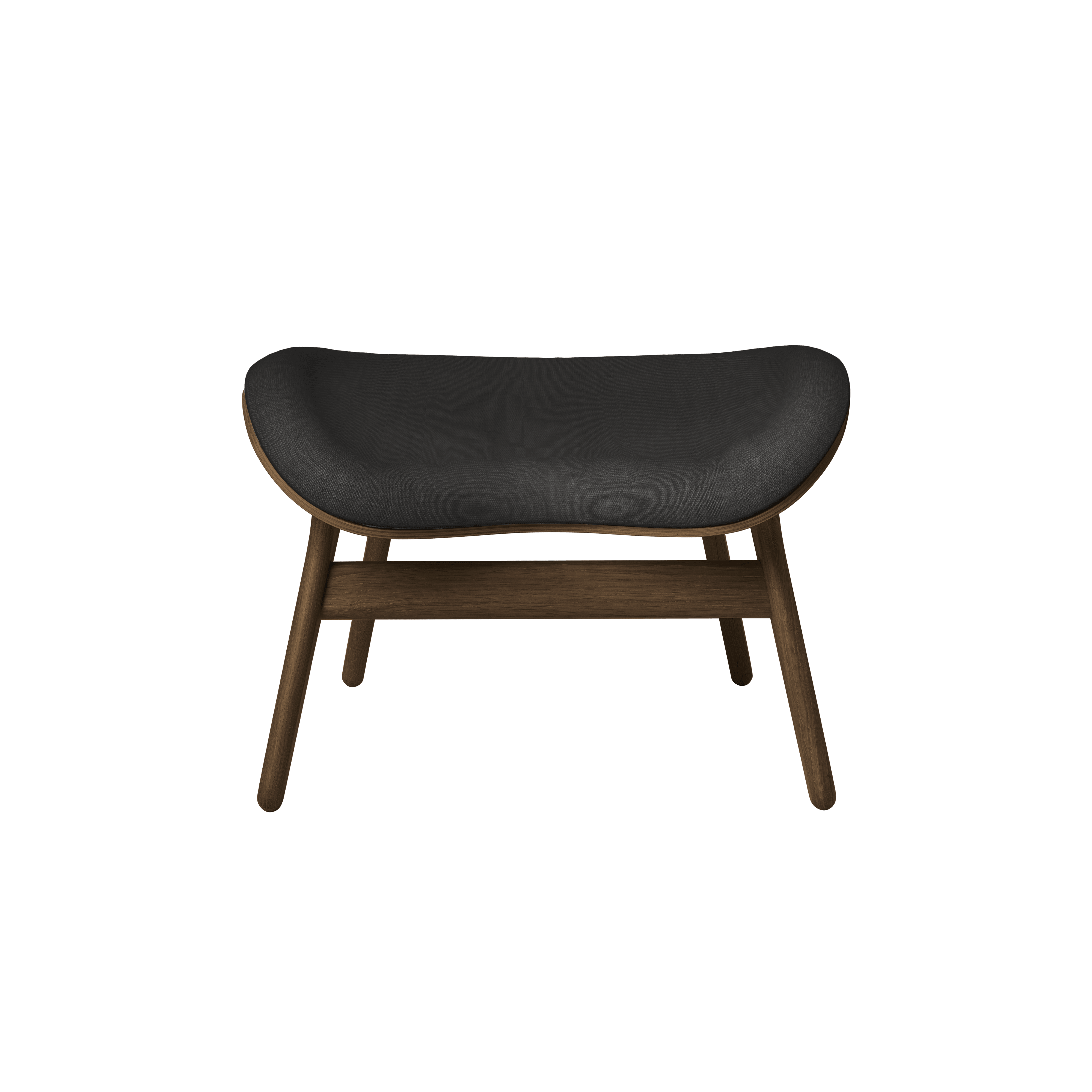 Conversation Piece ottoman is available in three color variants: oak, dark oak, and black oak, each offered in eight carefully selected shades of Horizons fabric, made from 100% recycled materials or two fabrics from the Teddy collection.