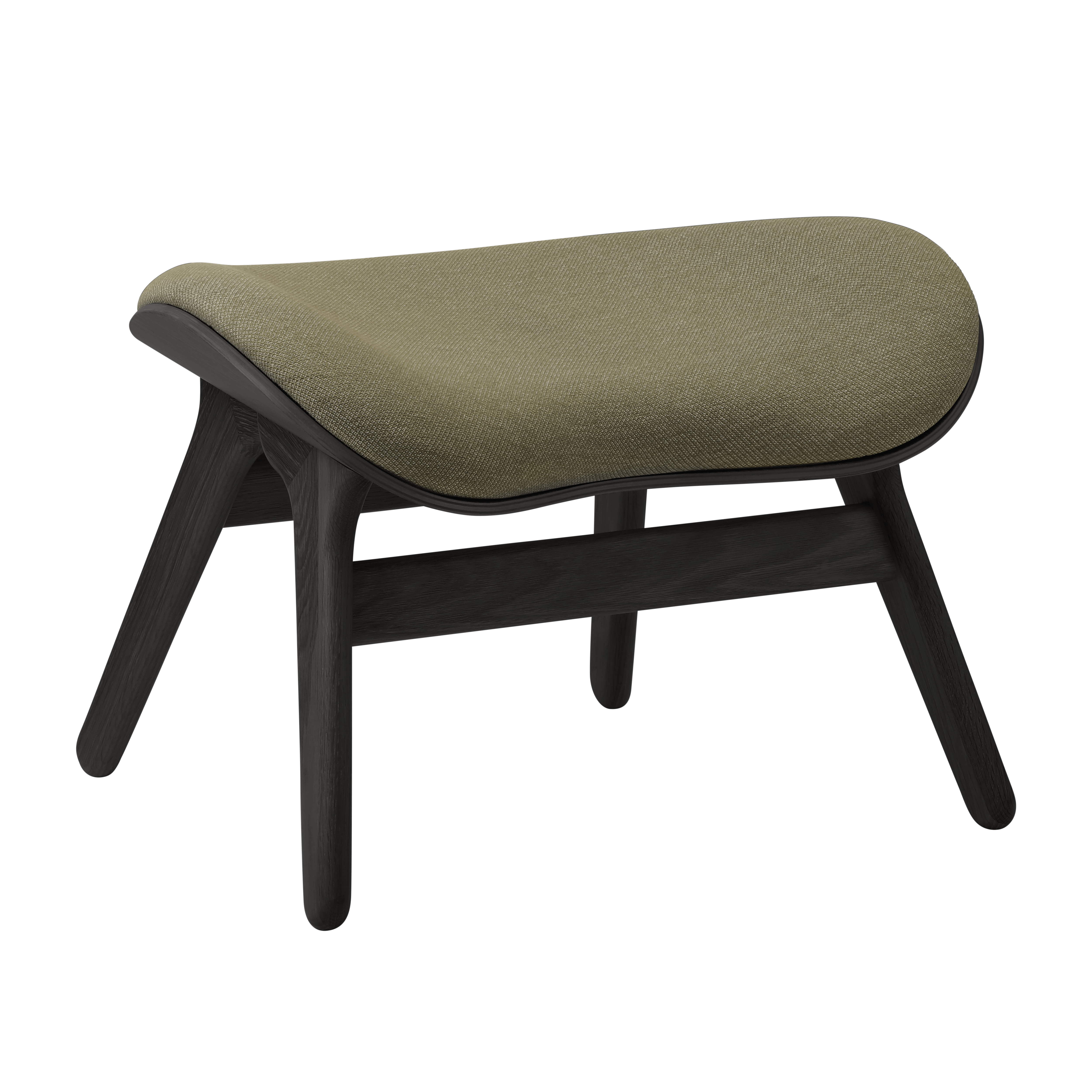 Conversation Piece ottoman is available in three color variants: oak, dark oak, and black oak, each offered in eight carefully selected shades of the Horizons fabric, made from 100% recycled materials or two fabrics from the Teddy collection.