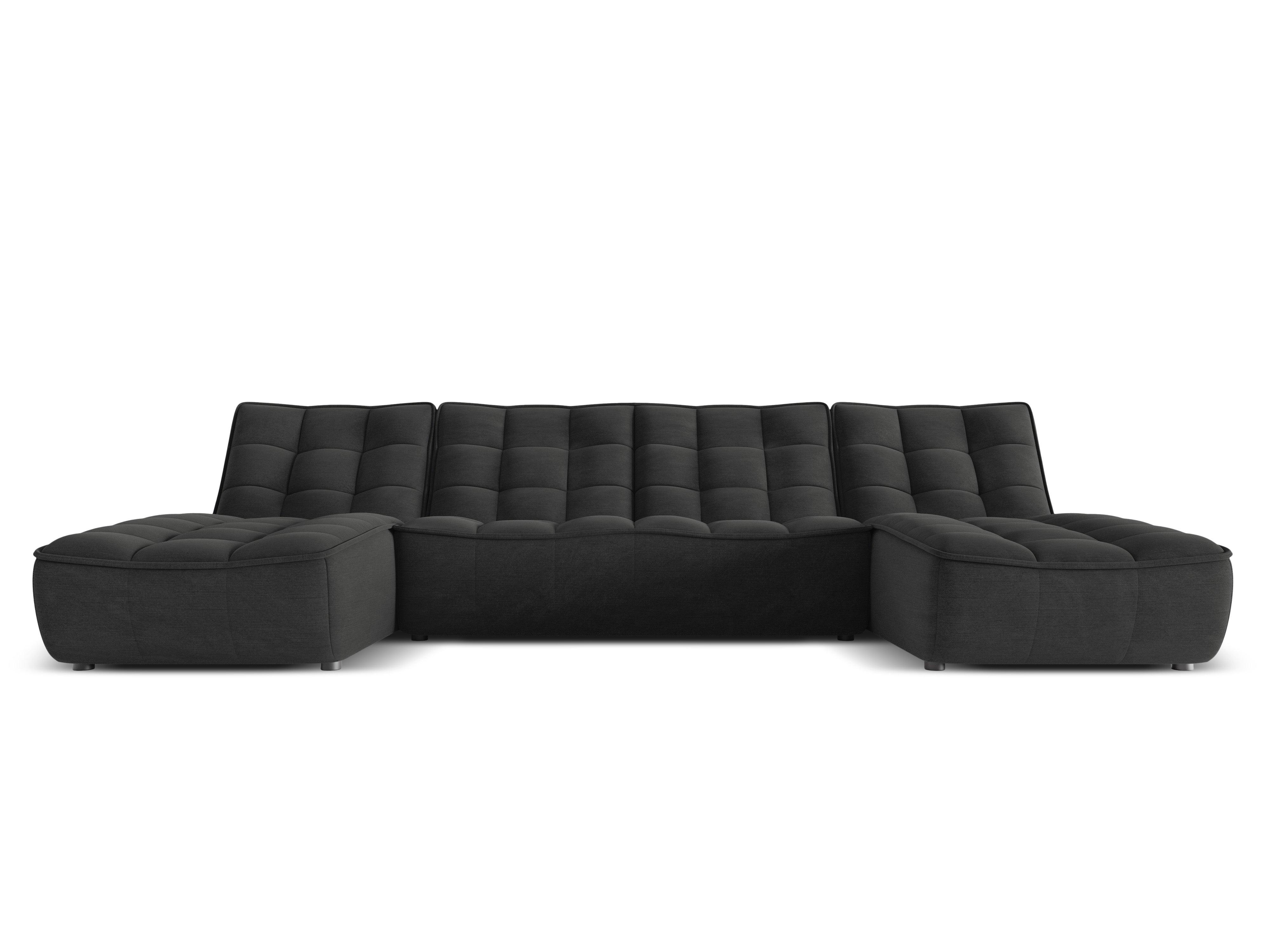 The panoramic corner sofa Moni defines functionality and comfort combined with modern design. The stylish tufting and original shape are perfect for both an elegant living room and a contemporary office. The line of the seat and backrest is curved and features a gently contoured indentation, offering extraordinary user comfort.
