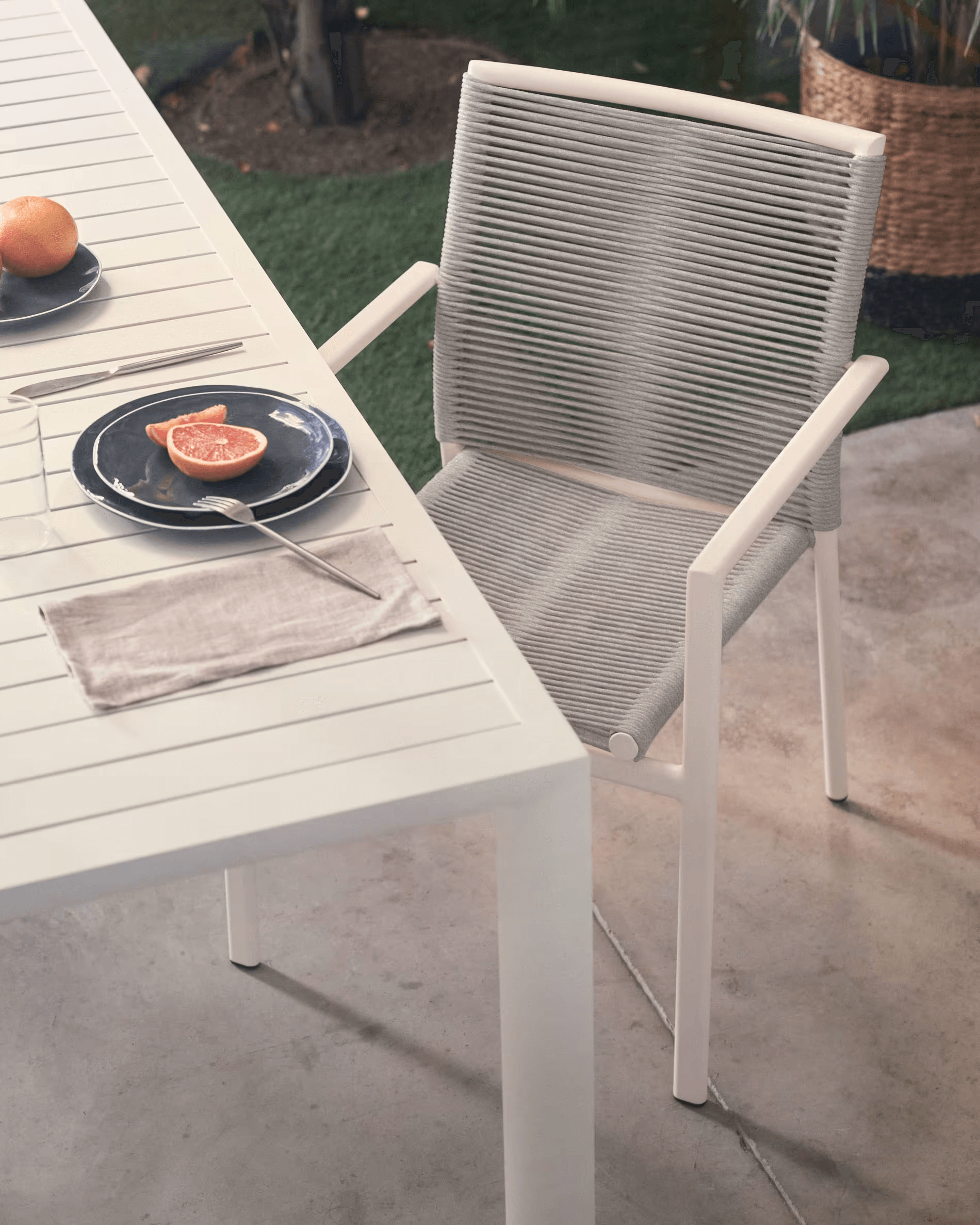 Fotel zewnętrzny CATALINA beżowy z wykończeniem z litego drewna La Forma    Eye on Design