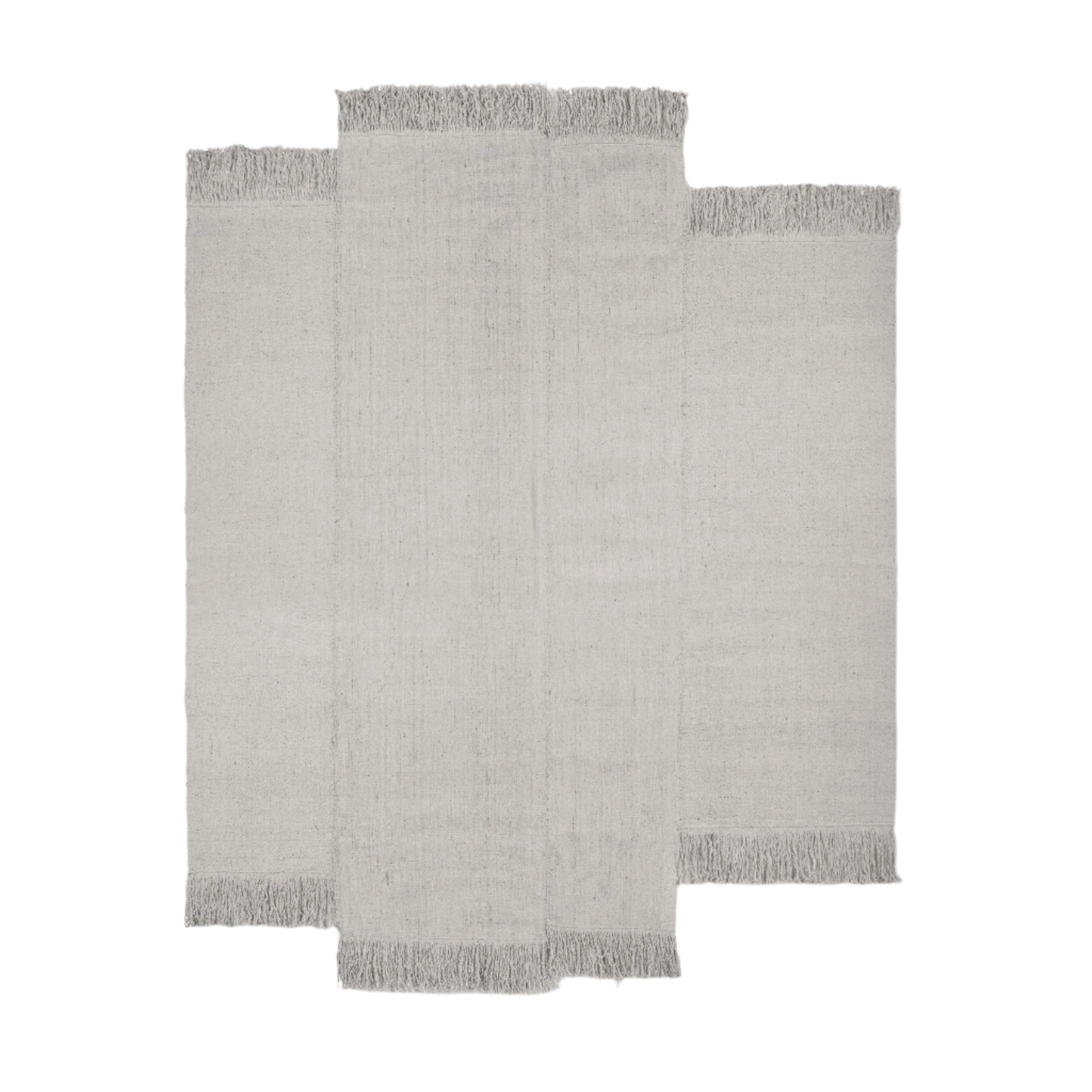 Carpet Alter delights with its unique form and natural aesthetics, serving as an elegant accent in any space. Handcrafted from natural, undyed wool and composed of diagonally stitched panels, it creates an unconventional, geometric layout that draws the eye and adds a distinctive character to the interior. Long, irregular fringes on the sides give the whole a sense of lightness and dynamism.