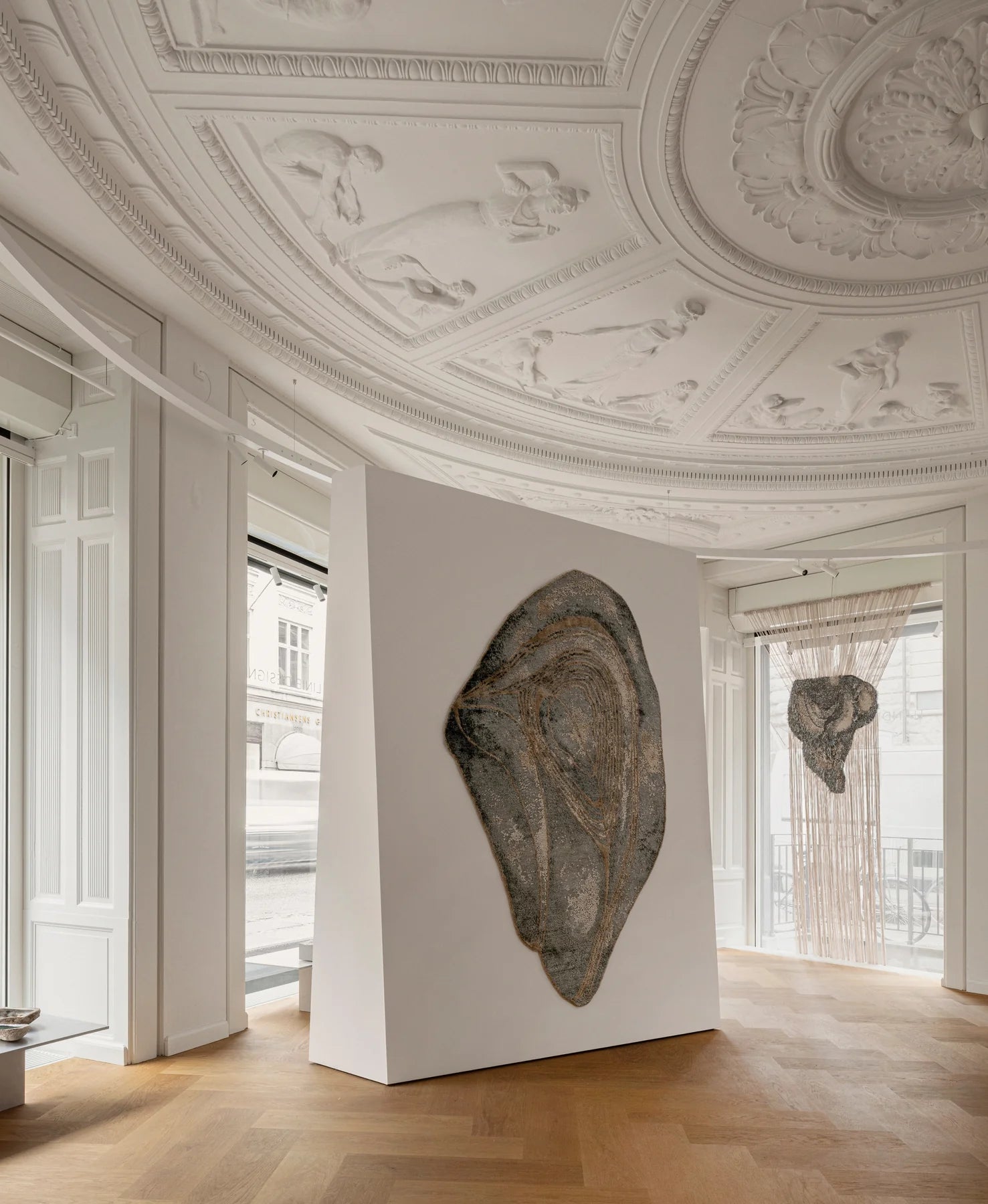 Rug Hushed Wave is an artistic form captured in hundreds of thousands of hand-tied knots. The abstract motif inspired by the shape of a shell, woven from natural fibers, creates subtle lines and textured contrasts. Shorter, densely trimmed wool fibers highlight the structure of linen and silk, giving the whole a sophisticated and original appearance. This rug is a synonym for uniqueness and elegance in interiors that require timeless design.