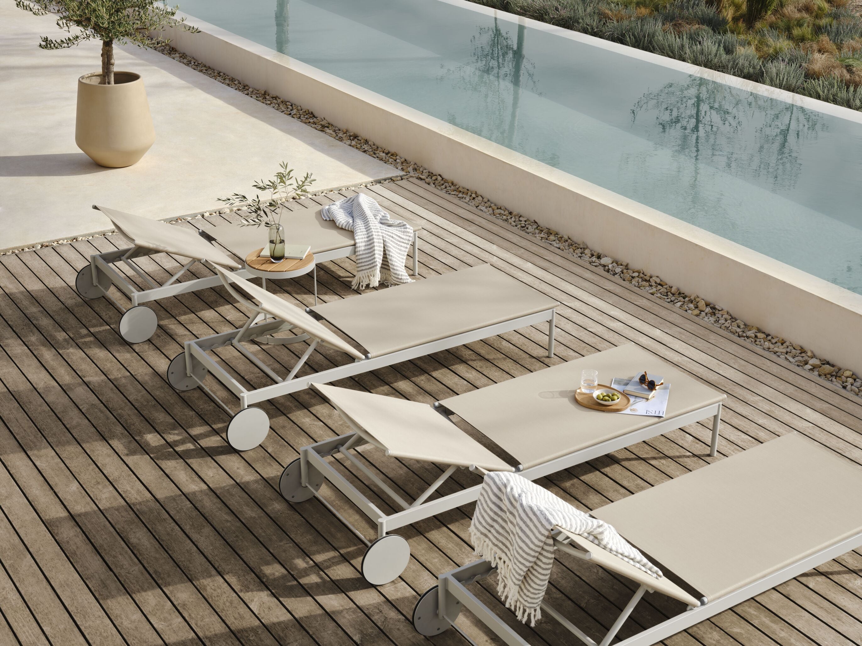 Sunbed Ease has been designed with stylish relaxation, combining modern aesthetics with maximum comfort. Transform your garden, balcony or terrace into a luxurious place of rest and enjoy beautiful moments in the sun's rays. You can use it in a minimalist version or add an additional layer of convenience thanks to the pillow and resistance. Ease is the perfect addition to an elegant outdoor space.