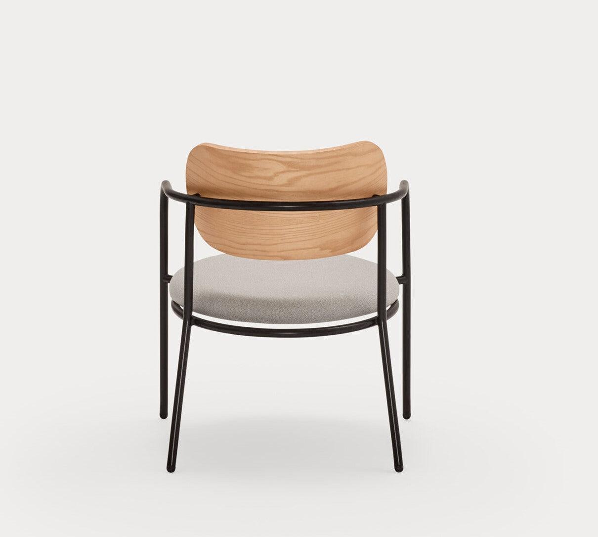 Armchair Eclipse in light oak is inspired by the phenomenon from which its name comes. The combination of shifted circuits is the starting point for this collection, creating non -social relief between the upholstered seat and the metal structure on which it rests.