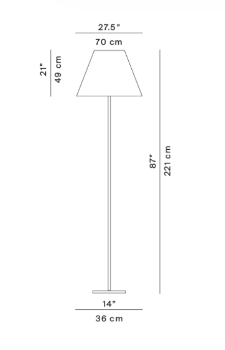 Lampa podłogowa zewnętrzna Grande Costanza Open Air is an unconventional garden lighting that combines elegance lamps internal with durability adapted to external conditions. Zaprojektowana przez Paolo Rizzatto dla Luceplan, jest idealnym wyborem na tarasy, werandy i patio, nadając im atmosferę stylowego "salonu na świeżym powietrzu". Its large, lightweight polycarbonate shade gently distracts the light, providing a pleasant and warm glow.