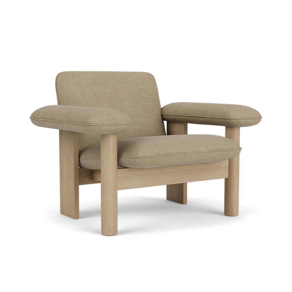 Chair Brasilia is a combination of modern form with Scandinavian minimalism and Brazilian modernism. Its characteristic low profile, wide armrests, and solid walnut base give it elegance and ensure exceptional durability. The upholstered seat and backrest made of high-quality fabric guarantee comfort and introduce a cozy atmosphere to the interior.