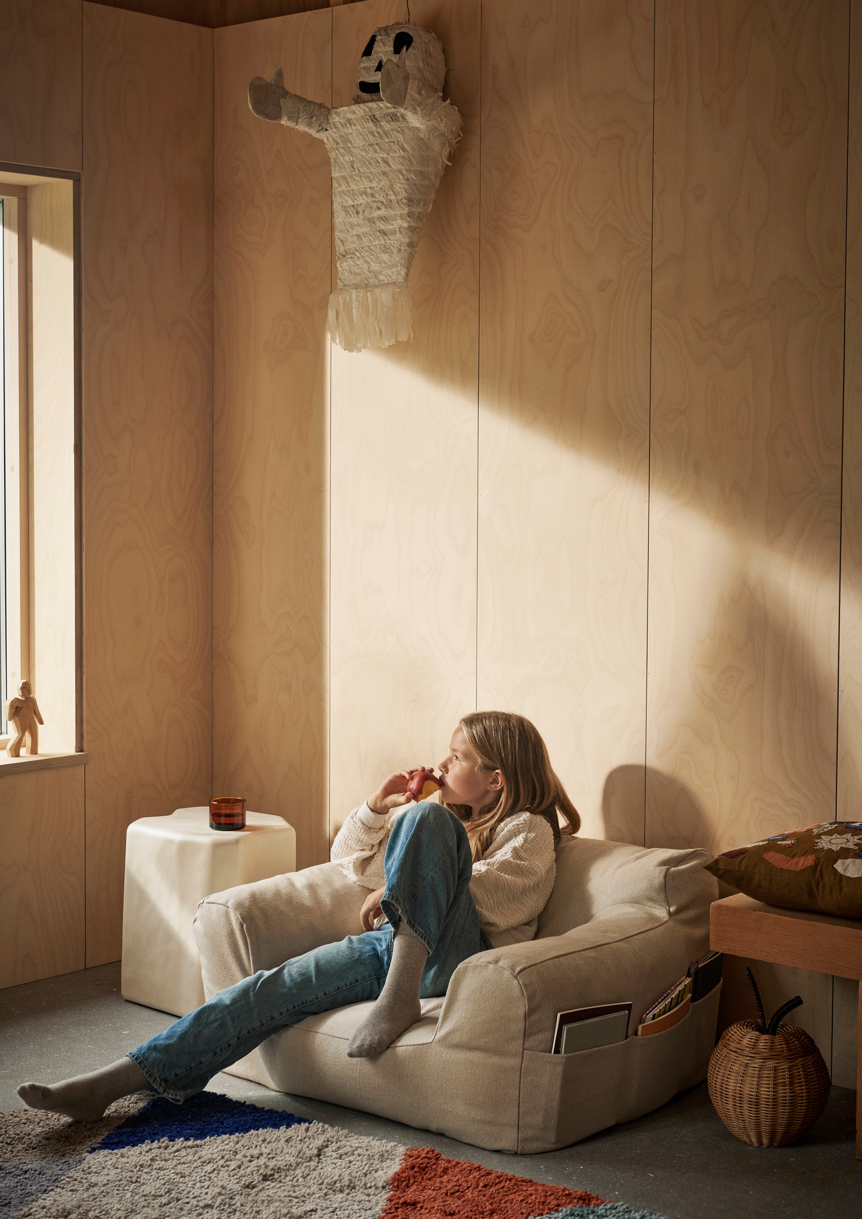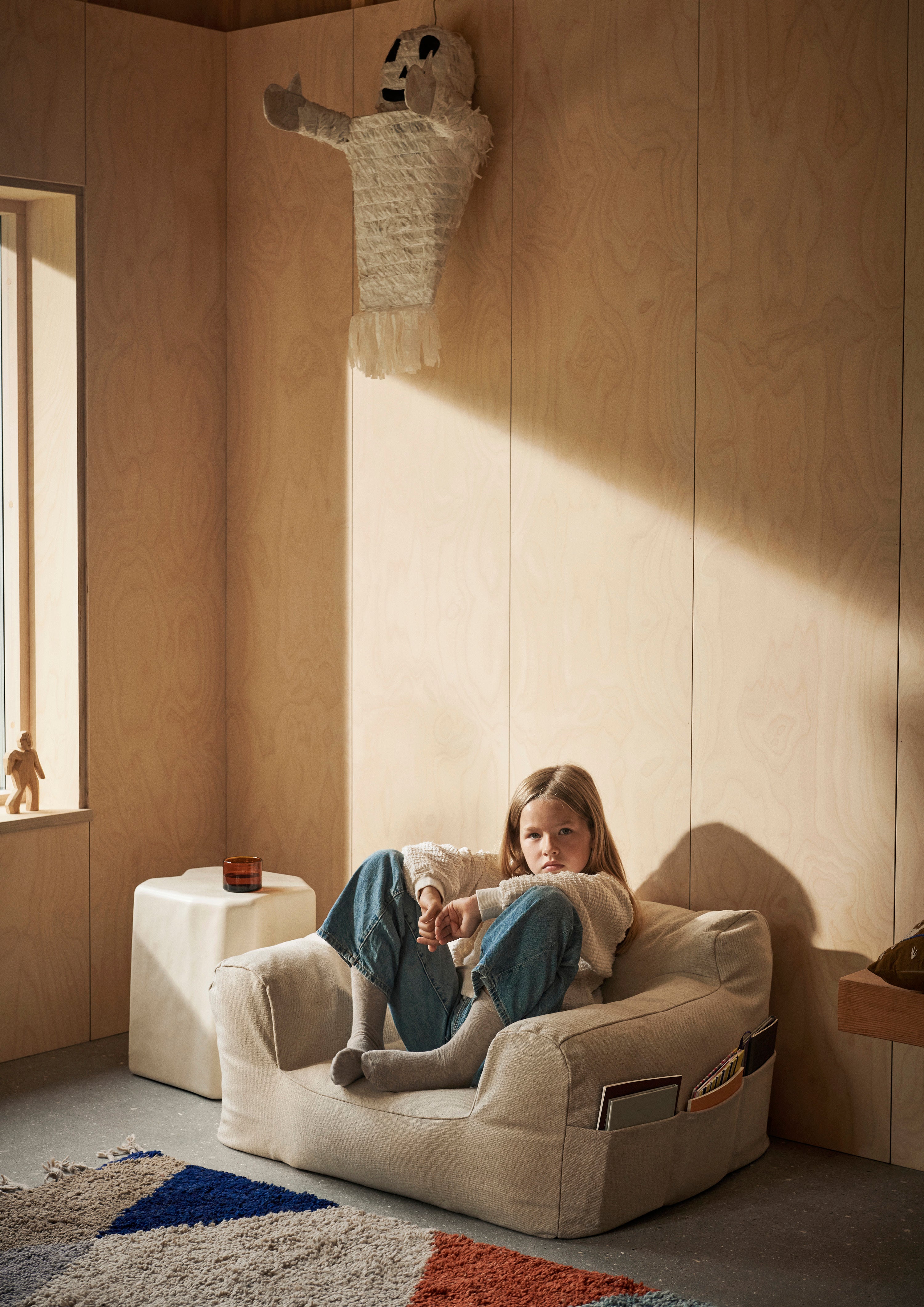 Fotel Billow Bean Bag is a soft, cozy seat designed for moments of relaxation and tranquility. With its low and deep construction, it offers maximum comfort, making it the perfect spot for reading books, resting, or playing. The cover made from certified organic cotton (GOTS) features a practical side pocket with three compartments – ideal for storing books, toys, and small items.