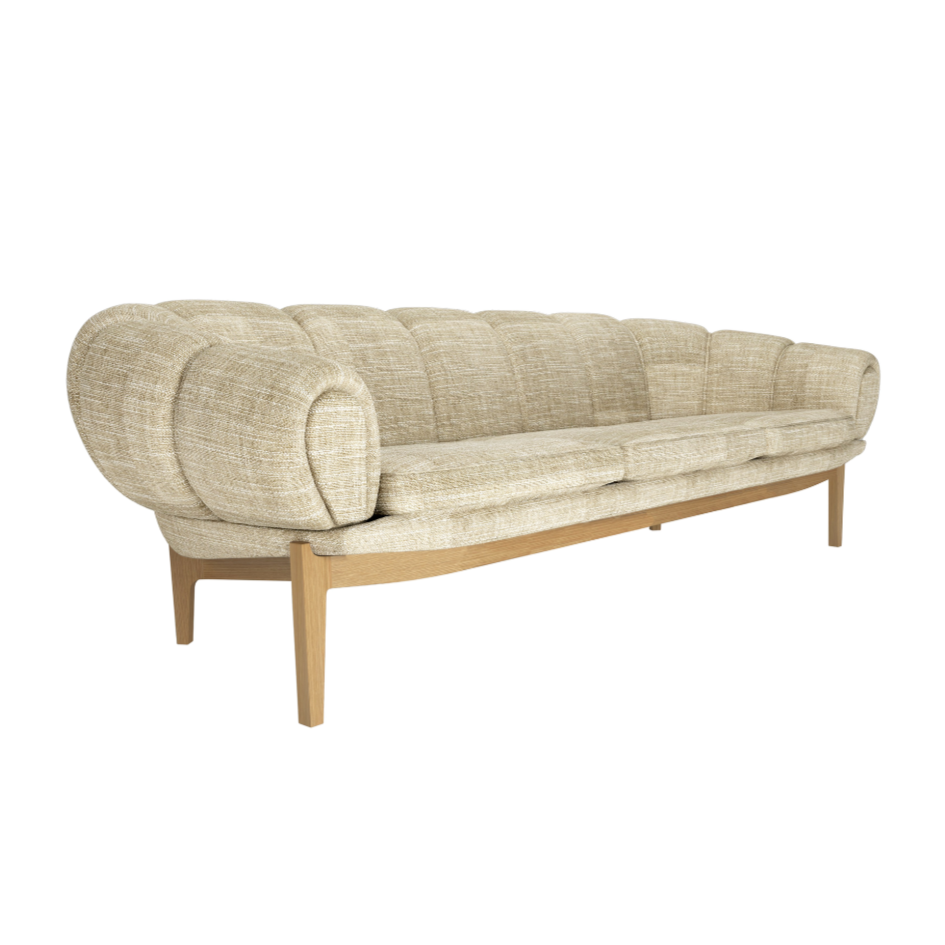 The chair version is a solo hero that fits perfectly in both classic living rooms and contemporary public spaces. The organic shape with lush proportions is created through intricate hand-stitching of the upholstery and the artful shaping of foam and feathers. High-quality natural leather and a solid base made of solid wood (available in oiled American walnut or oak) complete the whole – making Croissant an almost sculptural piece of furniture, yet incredibly comfortable.
