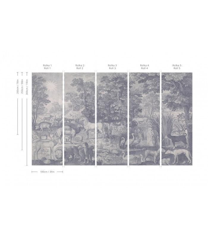 Non-woven wallpaper with animal motif FAUNA FRESCO muted blue