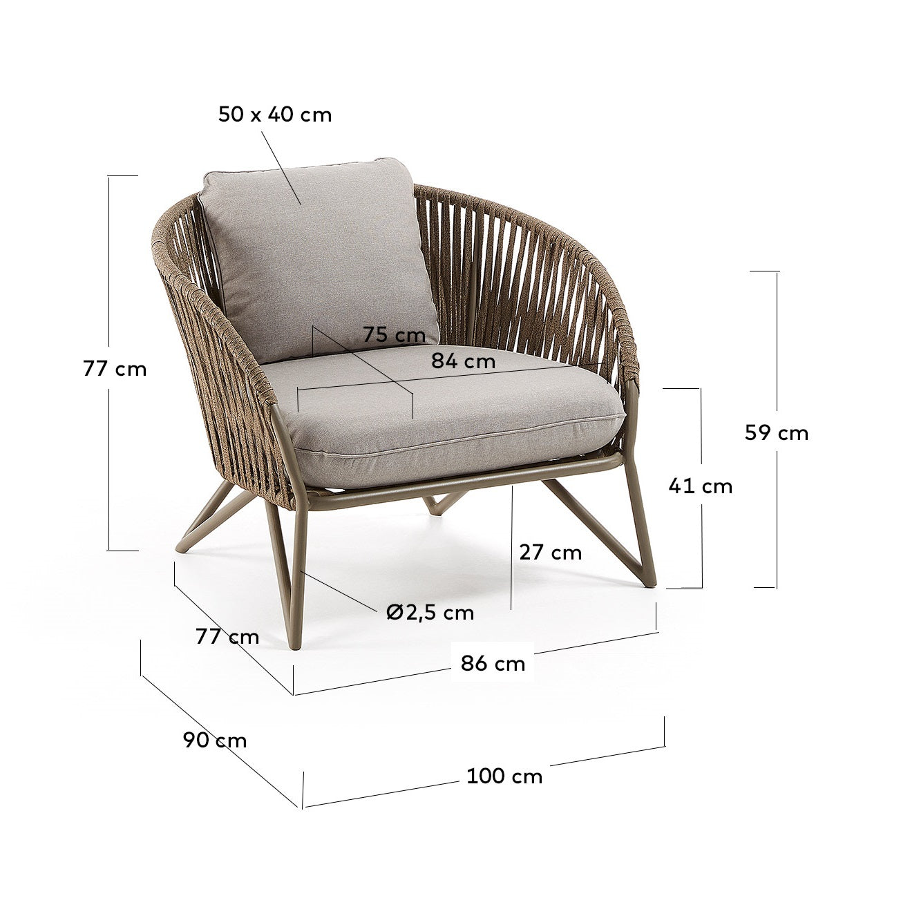 Discover the extraordinary project of Jordi Dedeu - garden armchair The industry, which is distinguished by the exceptional use of one of the most fashionable materials of today: rope. The backrest and seat of the chair are precisely weaved, following the curvatures of the structure, which gives it an organic, natural look.