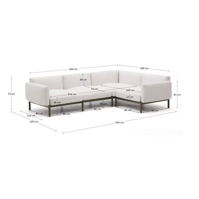Discover the incomparable quality and versatility with 4 -person modular sofa Sorells, which revolutionizes your external space. This elegant sofa not only changes the way you perceive your garden or terrace, but also defines new standards of comfort and functionality.