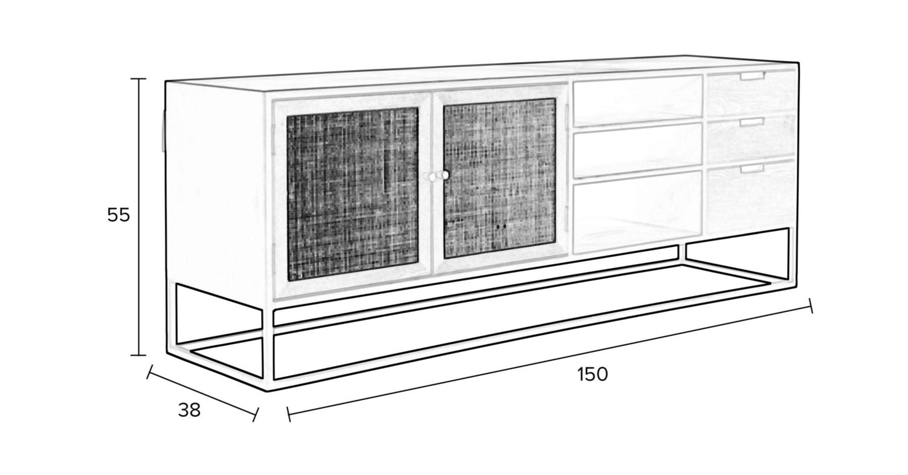 RTV cabinet Guji is an elegant and functional solution, ideal for any interior. Made of varnished MDF wood, equipped with rattan doors, perfectly matches both modern and classic arrangements. Powder -painted iron legs ensure stability and durability. The black and natural colors of the cabinets harmoniously harmonize with various interior design styles, giving them a unique character. Cabinet GUUJI RTV is an excellent choice for people who value elegance and functionality in their home.